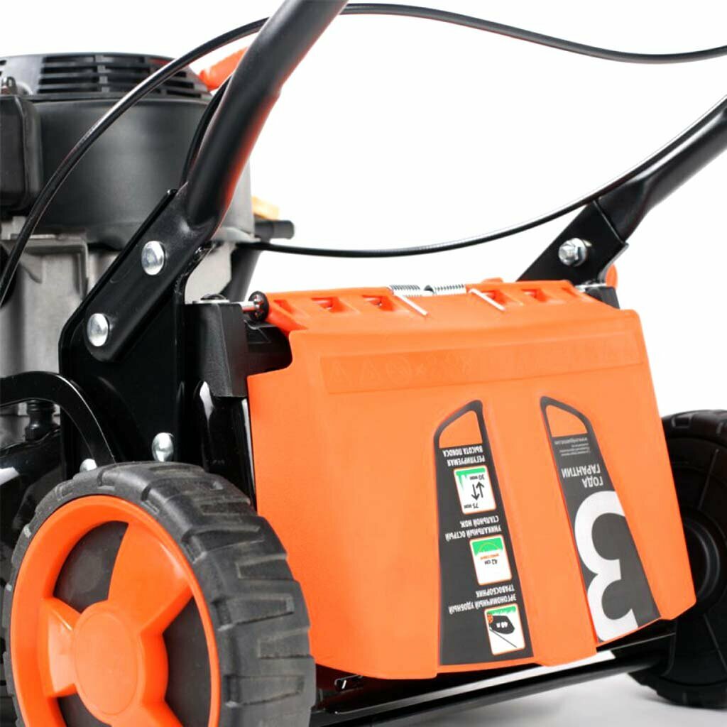 | Отзыв: | На фотографии в приложении какая то другая модель. Мне пришла мощностью 4 л. с. с пластмассовым травосборником. |