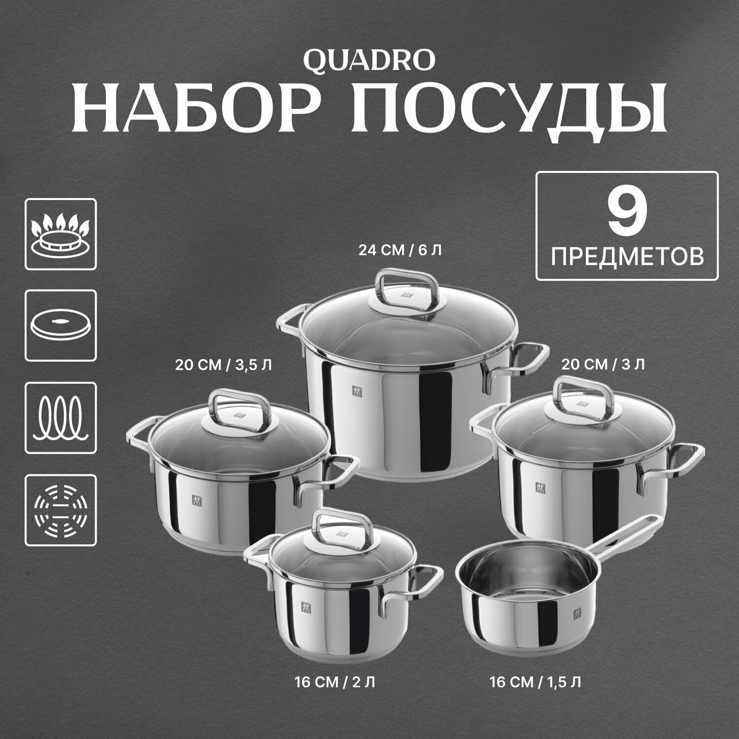 Купить Набор кастрюль ZWILLING Quadro 9 предметов Германия