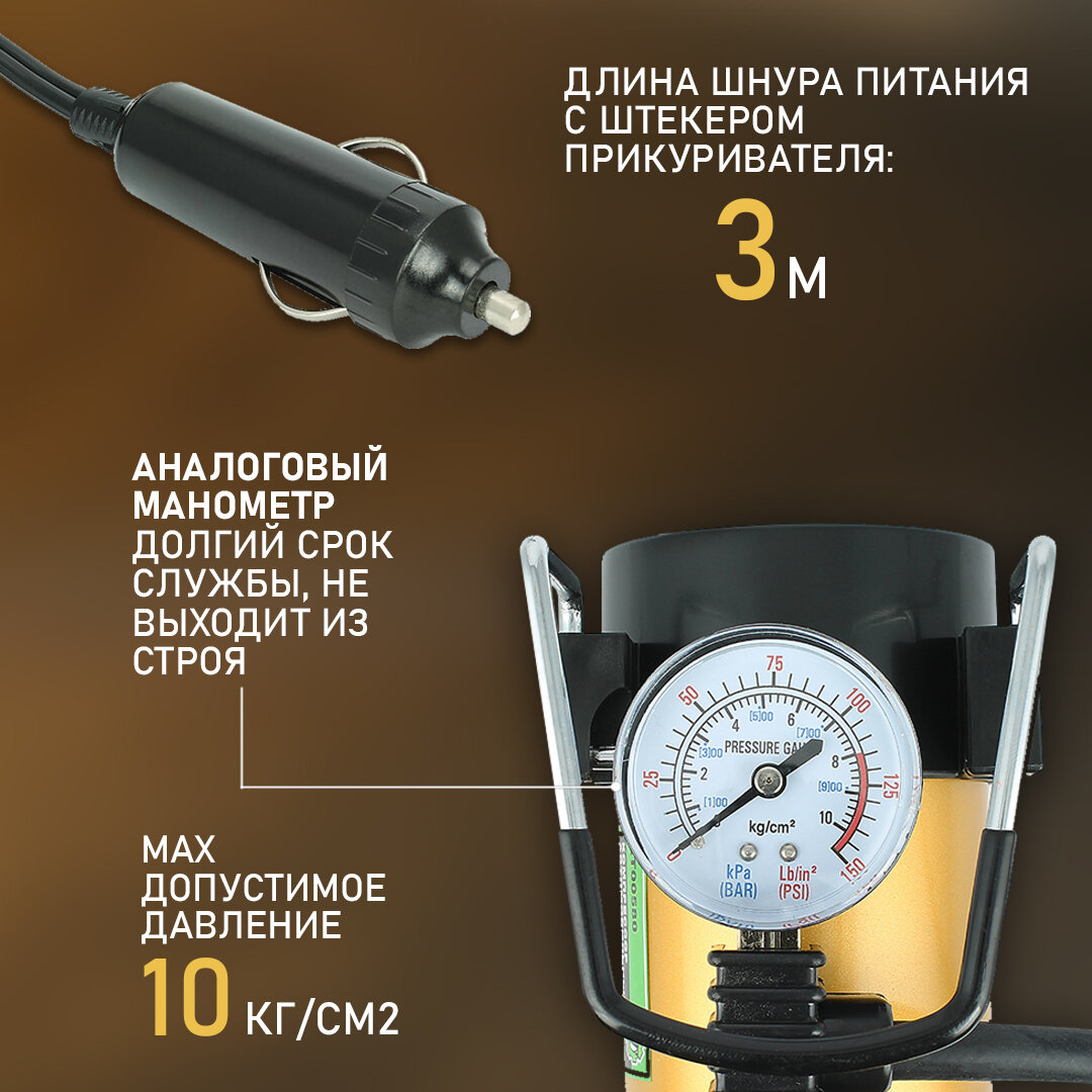 Компрессор насос автомобильный поршневой воздушный 35л 12в 150Вт с аналоговым манометром одноцилиндровый для авто для шин для гаража интересное: