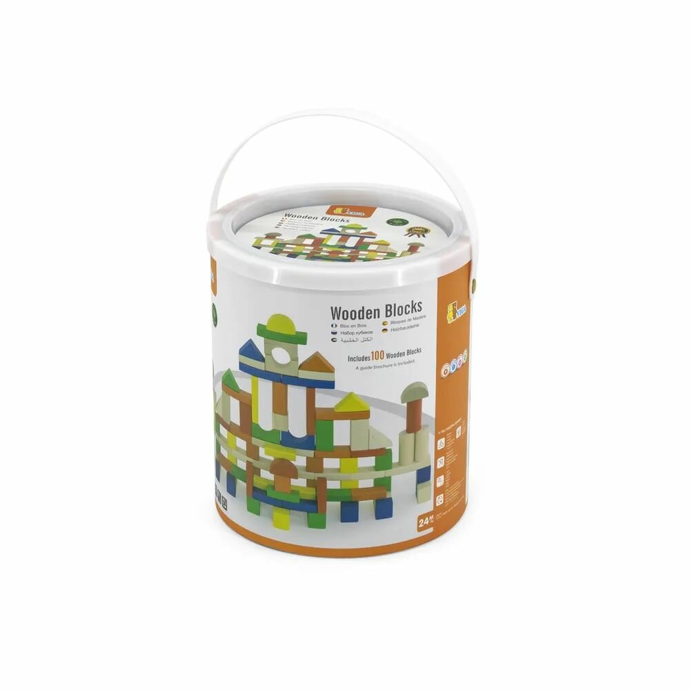 Конструктор деревянный блочный (100 деталей) в ведре, VIGA 59697