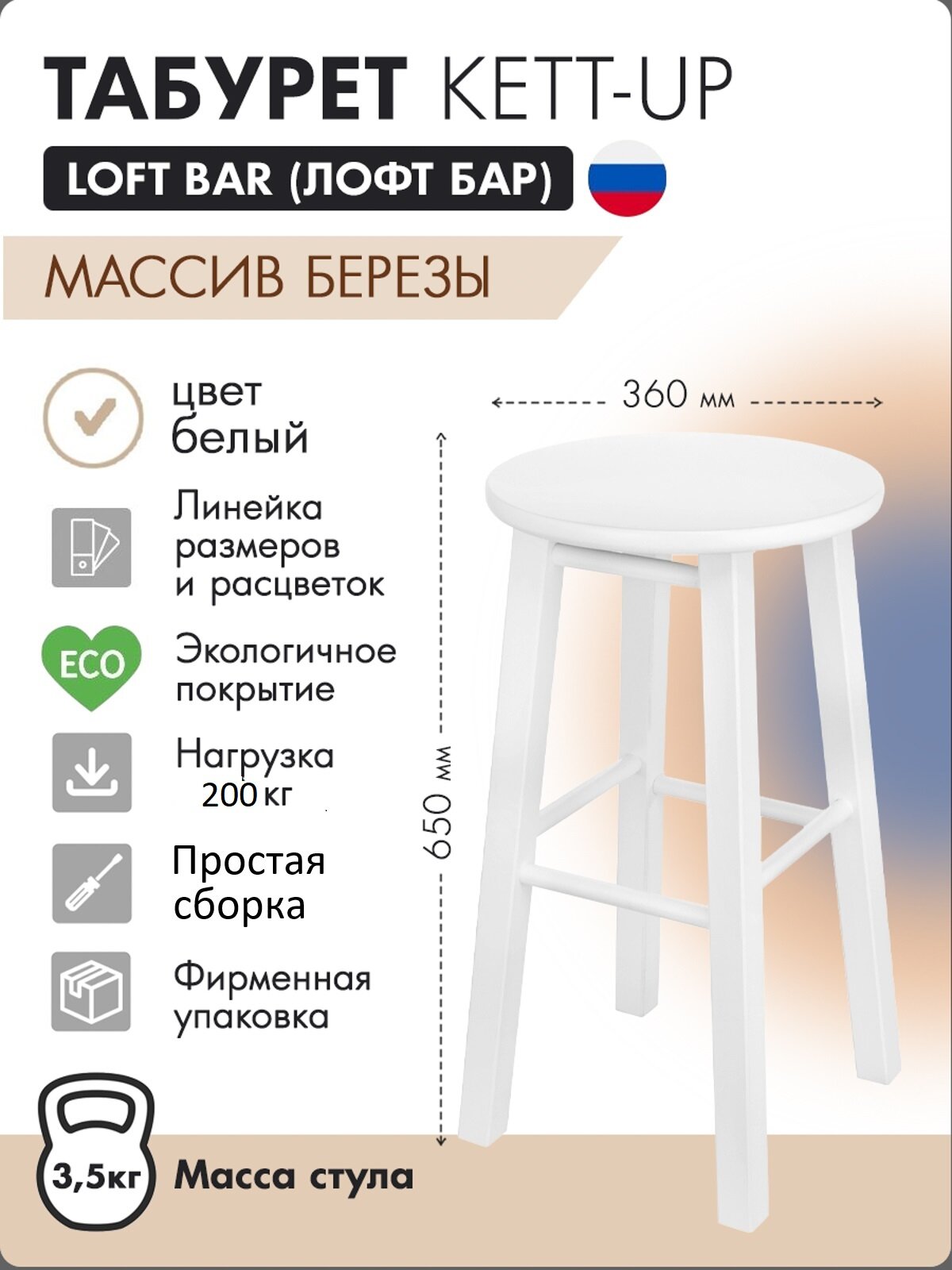 Табурет KETT-UP LOFT BAR барный, 65см, деревянный, KU335.4, сиденье круглое, белый