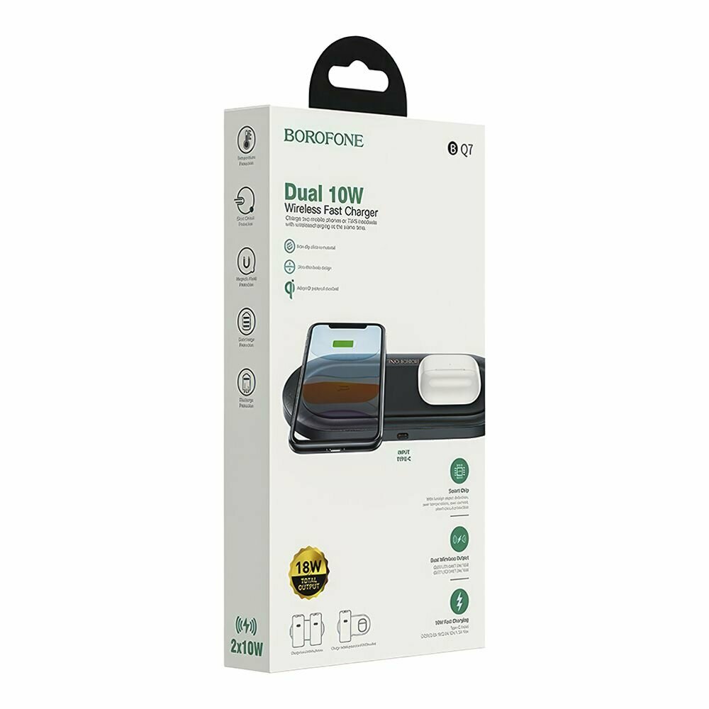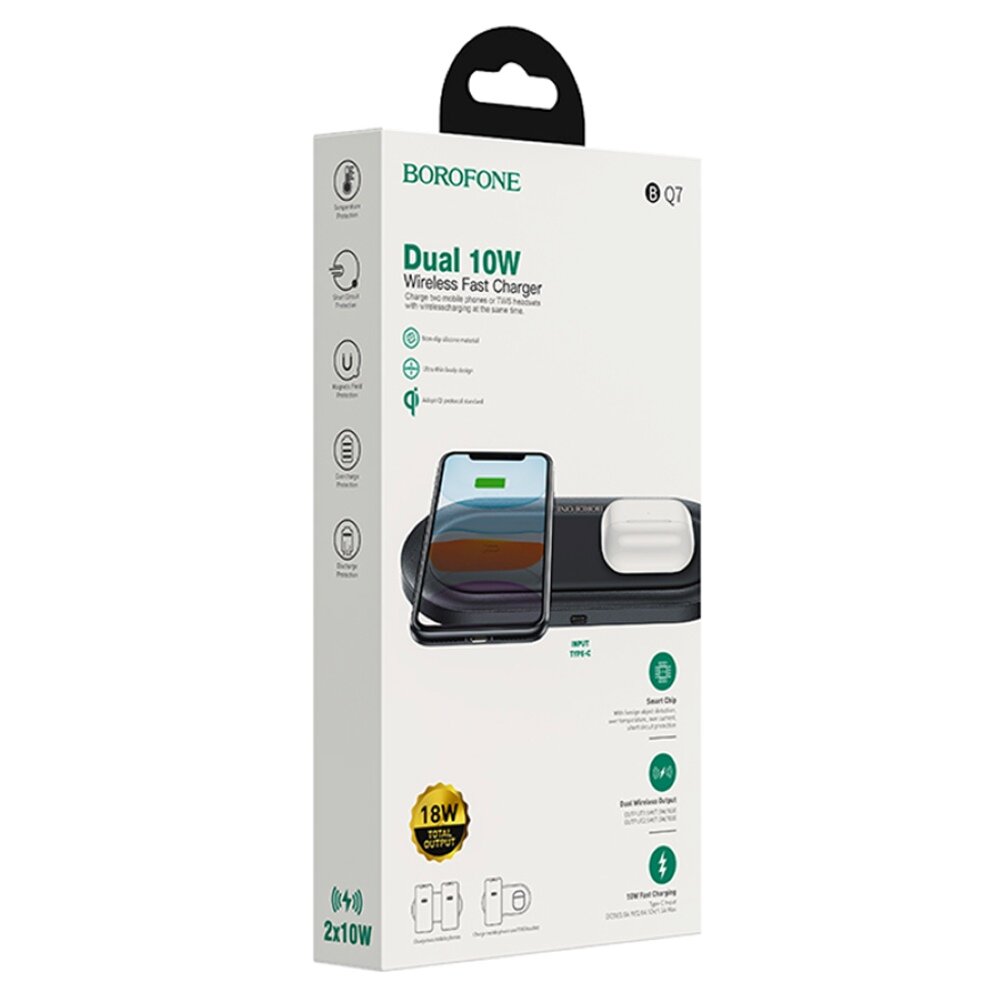 Беспроводное зарядное устройство borofone BQ7 2х10W 2в1 для смартфонов и наушников
