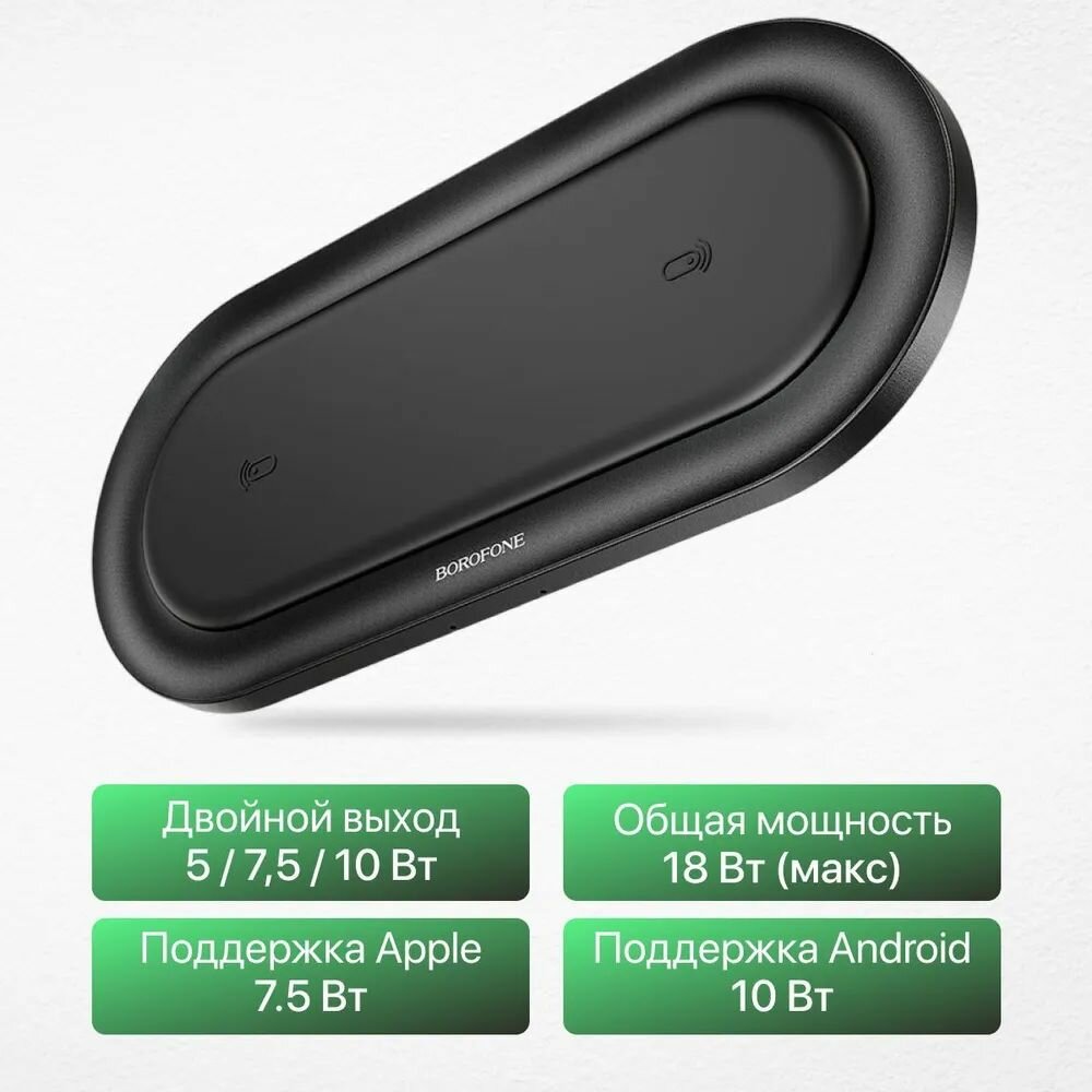Borofone Беспроводное зарядное устройство bq7 prominent dual 2x10w, 18w (черный) 0L-MG-WF319