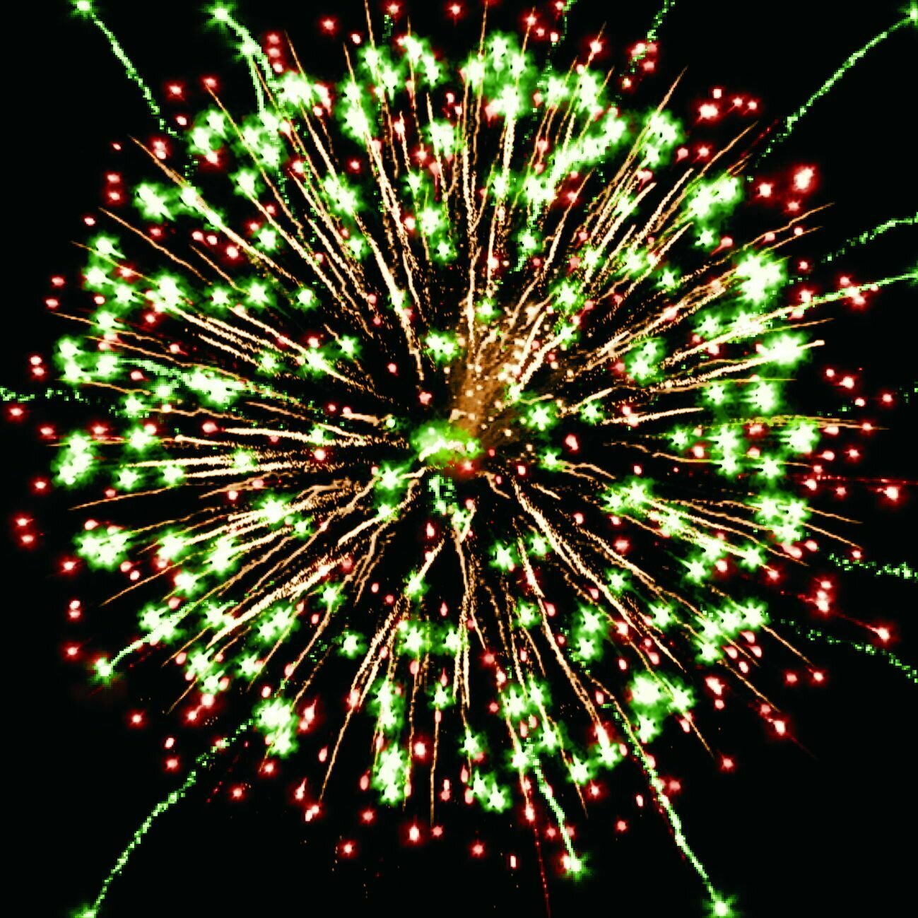 | Эффекты | Эффекты: 1. Разноцветные кометы разрываются сферами. 2. Серебряные форсы / красные и зеленые мерцающие огни. 3. Золотые форсы / зеленые и золотые мерцающие огни. 4. Зеленые огни. 5. Золотые форсы / красные и золотые мерцающие огни. 6. Золотые искристые форсы и красные огни. 7. Золотые искристые форсы и зеленые огни. 8. Красные / зеленые и серебряные мерцающие огни. 9. Серебряные форсы / красные и трещащие серебряные огни. 10. Серебряные форсы / зеленые и золотые трещащие огни. |