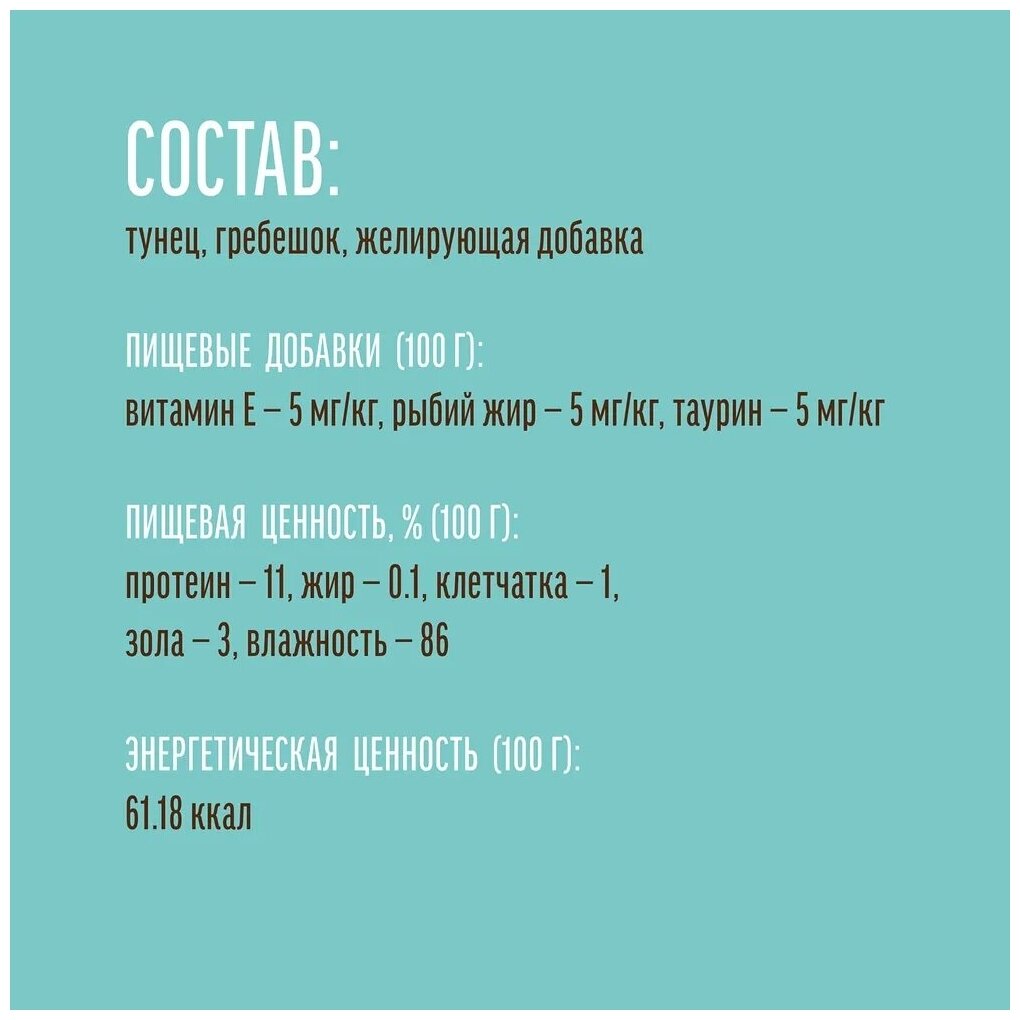 Паучи для кошек Обед №3 для кошек Тунец с гребешком в нежном желе (цена за упаковку) 50г х 12шт