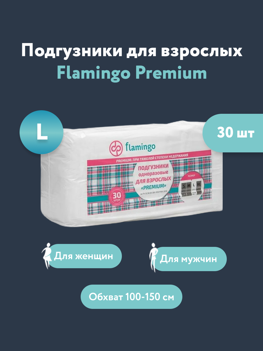 Купить Flamingo Premium Подгузники для взрослых размер L 30 шт
