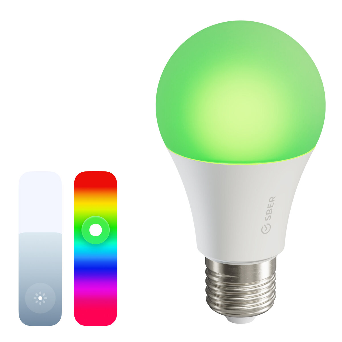 Умная лампа Sber А60 SBDV-00019, E27, 9 Вт, 806 Лм, Wi-Fi, цветная, регулировка