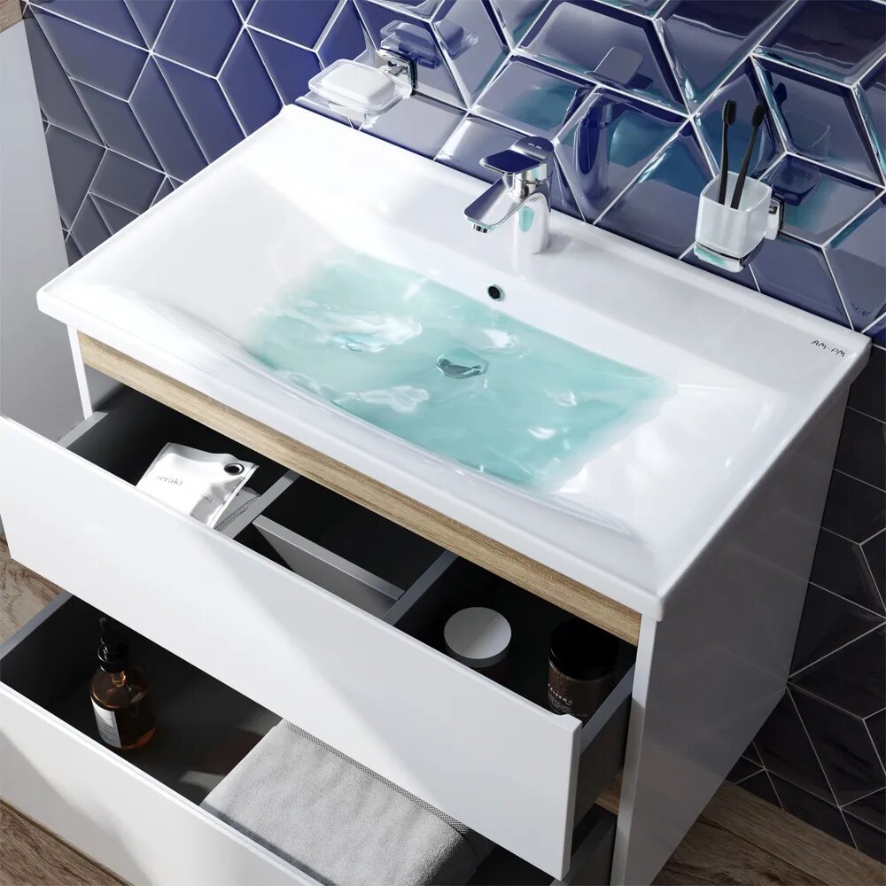 Комплект для ванной тумба с раковиной AM.PM X-Joy M85A-FHX0802-WC0802WG подвесная, влагостойкая 80 см, 2 ящика, белый глянец