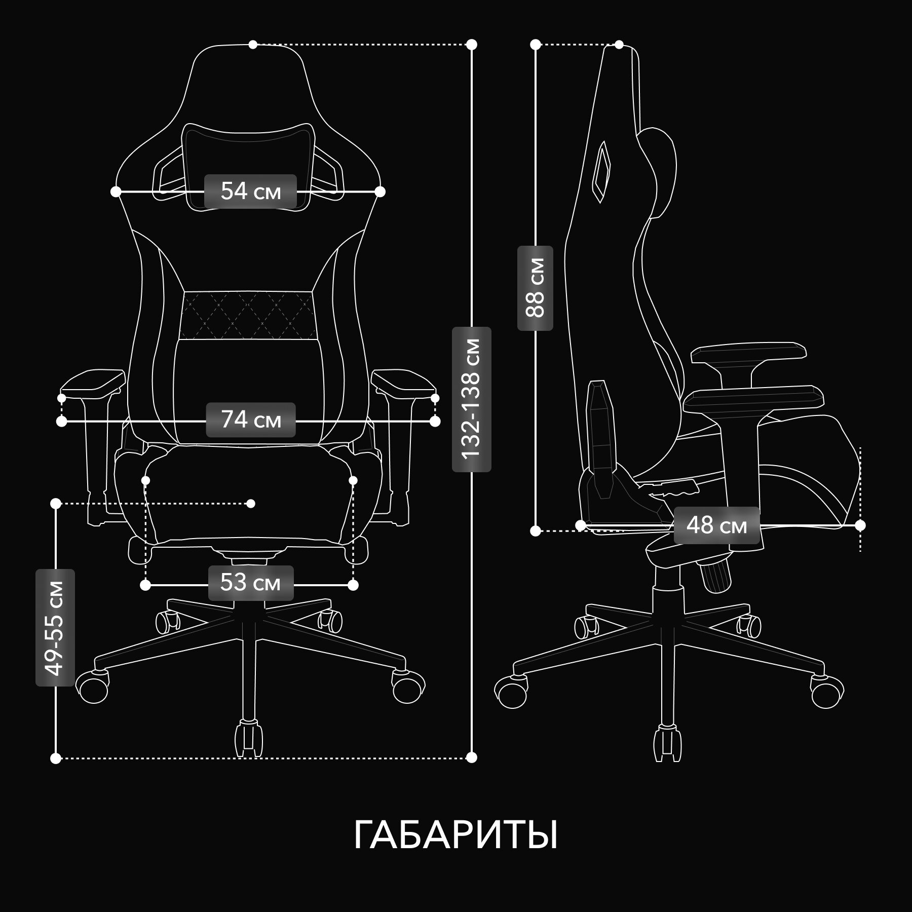 | Регулировка | высоты подлокотников / высоты сиденья / глубины положения подлокотников / наклона спинки / угла подлокотников |