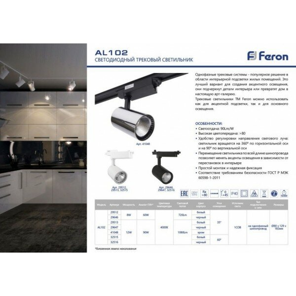 Трековый светодиодный светильник Feron AL102 29646 интересное: