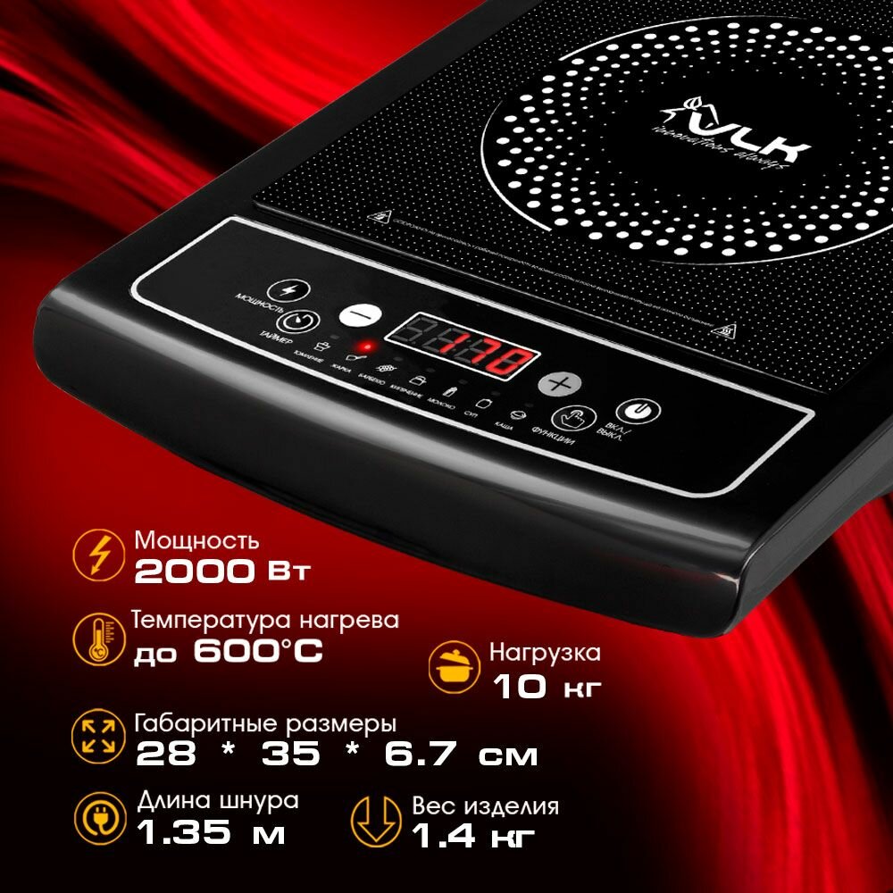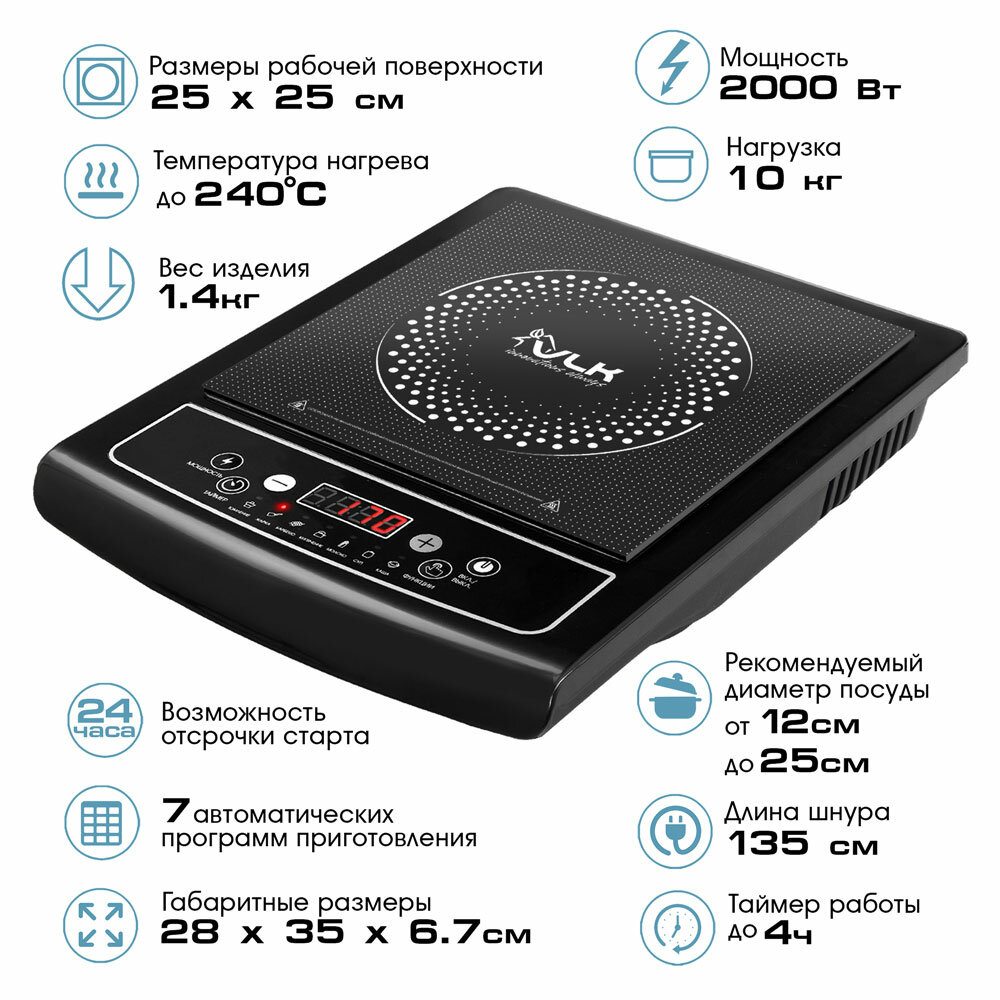 Индукционная плита настольная электрическая VLK Palermo-7726 / 2000 Вт / до 10 кг / до 240 градусов / 7 автоматических программ
