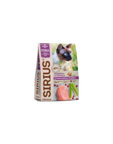 Сухой корм SIRIUS для стерилизованных кошек, индейка и курица 1,5 кг