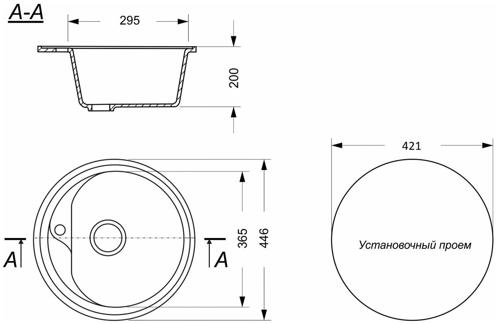 Кухонная мойка GranAlliance GA-20 черный 308 (GA-20-308)