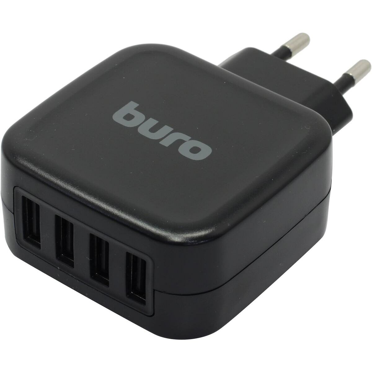 Сетевое зарядное устройство BURO TJ-286B Smart, 5 А, 4 x USB, черный