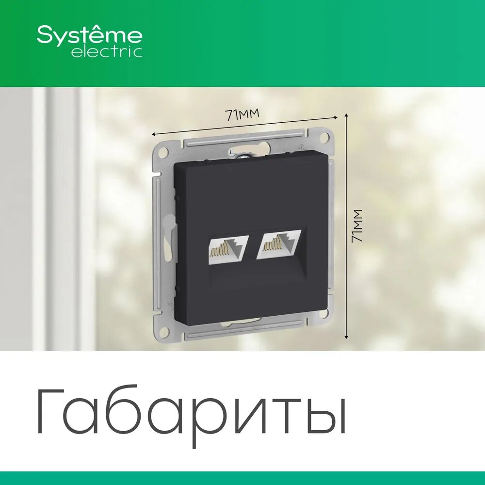 Купить Systeme Electric ATLASDESIGN розетка двойная компьютерная RJ45+RJ45, кат.5E, механизм, карбон ATN001085