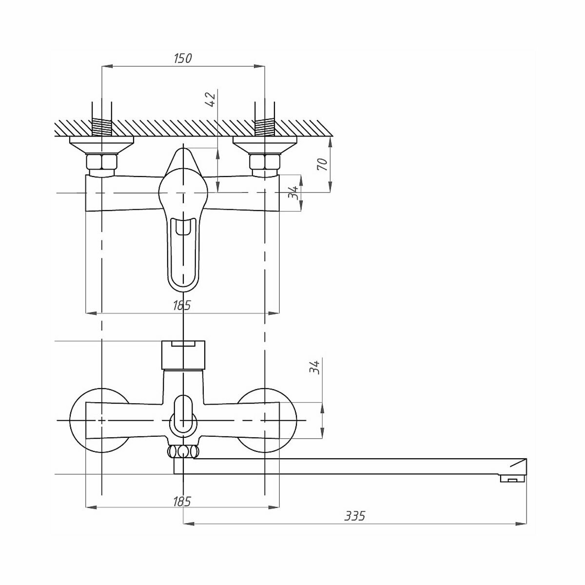 Смеситель для ванны Fauzt FZS-240-B100, однорычажный, хром