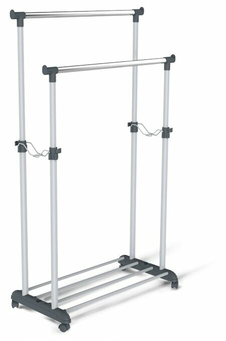 Вешалка напольная гардеробная Sheffilton CH-4149, 1660×860×440мм, регулируемая, металл серый/хром, пластик темно-серый, передвижная, 2 штанги, В1-66