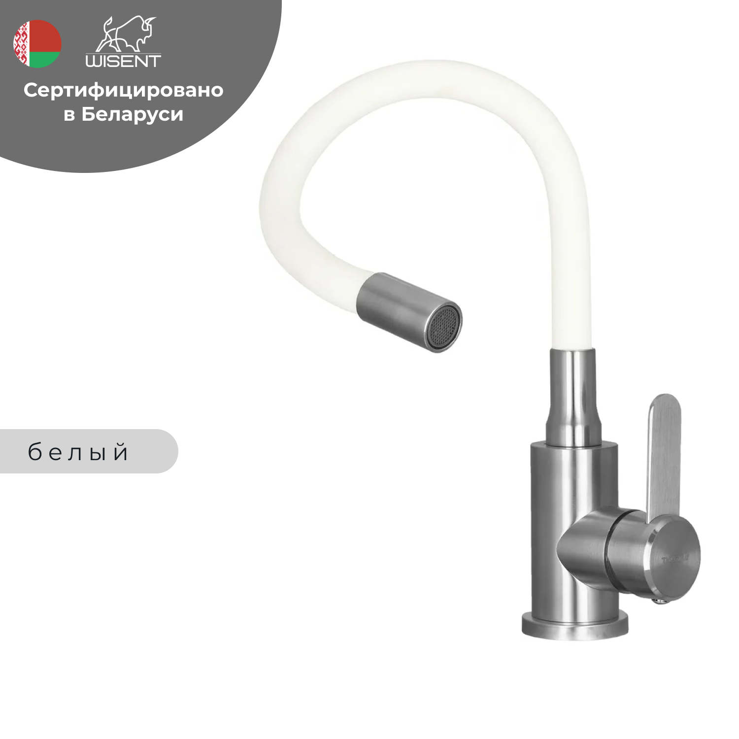 Купить Смеситель для кухни с гибким изливом (белый) WISENT W74004-03