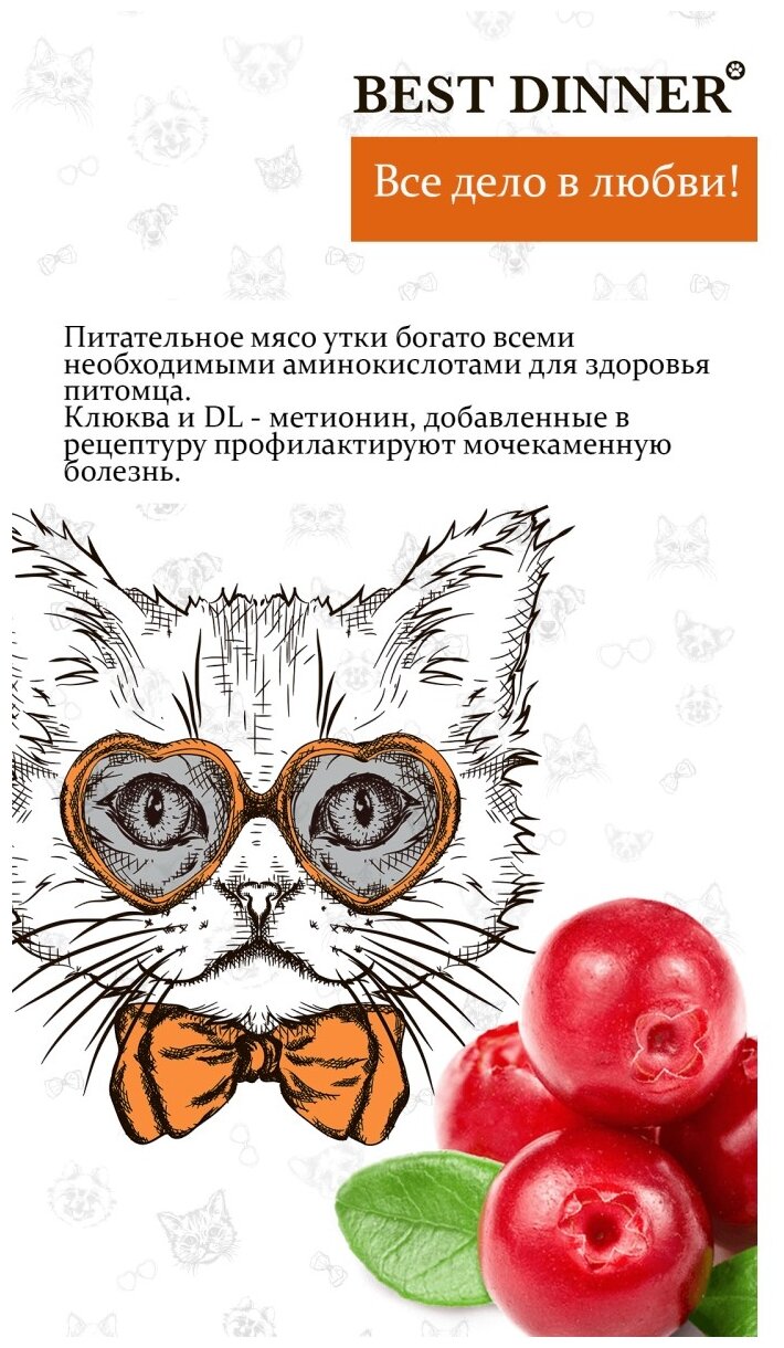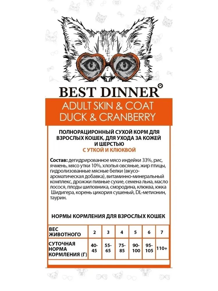 Best Dinner Сухой корм для кошек для ухода за кожей и шерстью с уткой и клюквой 75030 0,4 кг 55743