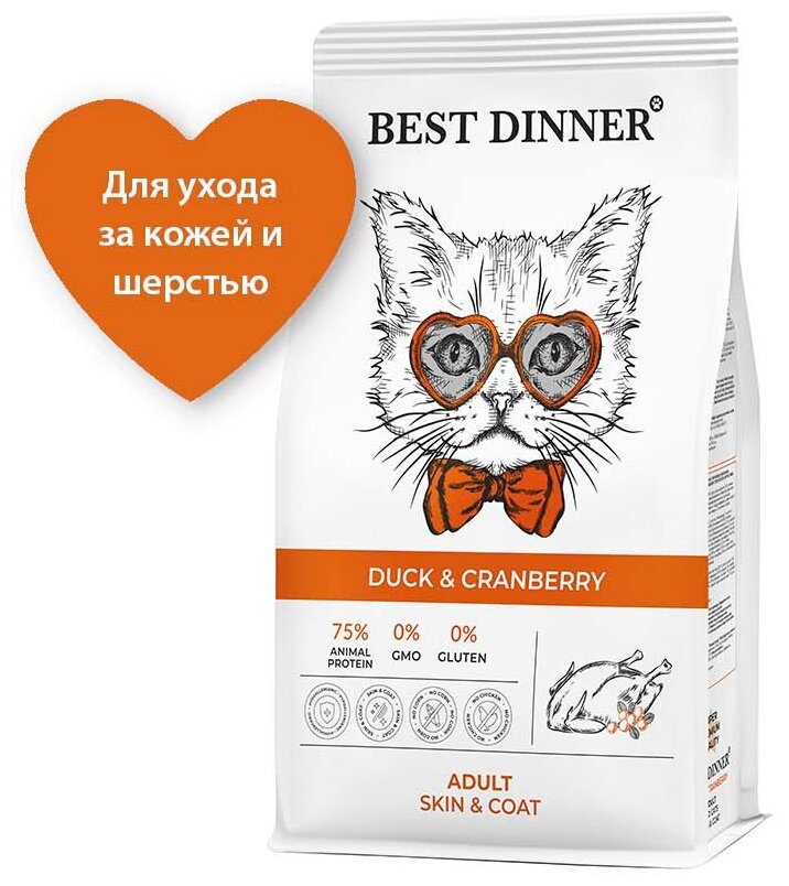 BEST DINNER ADULT SKIN & COAT DUCK & CRANBERRY для взрослых кошек с чувствительной кожей и шерстью с уткой и клюквой (1,5 + 1,5 кг)
