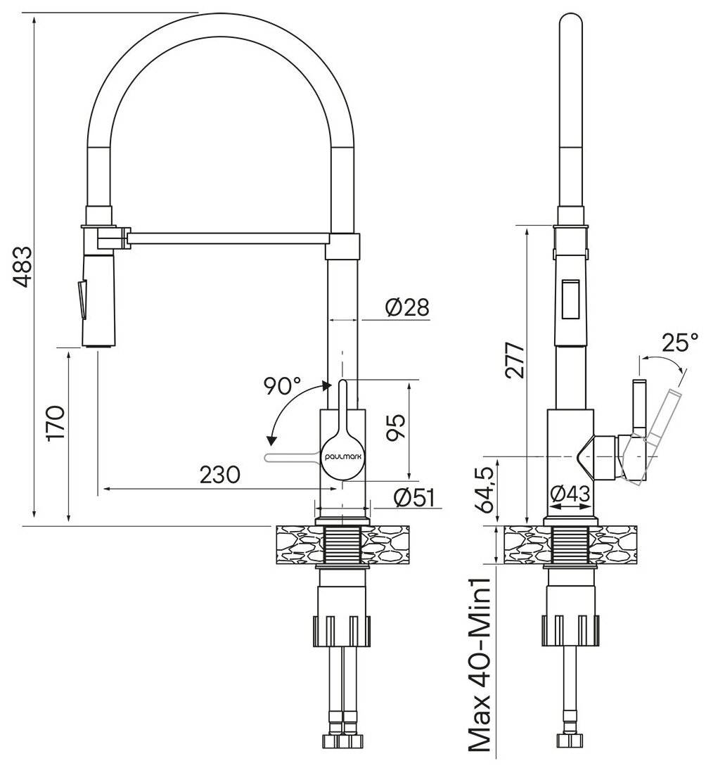 Смеситель для кухни Paulmark Halt Ha214021-CR с гибким изливом хром