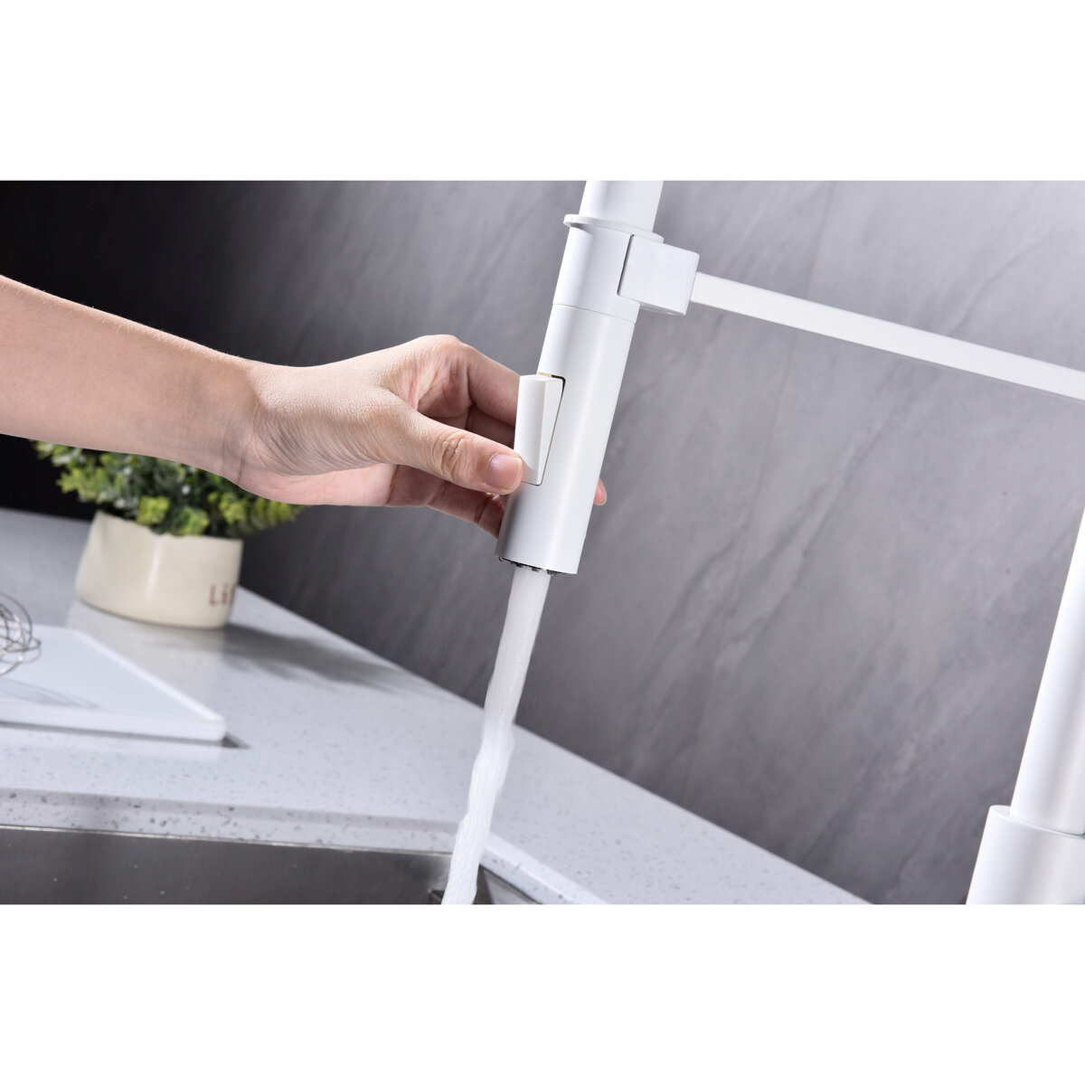Купить Кухонный смеситель с гибким изливом Paulmark HALT, магнитная фиксация эластичного излива, режимы струя / душ, однорычажный, латунь, на мойку / столешницу, белый матовый, Ha214021-431