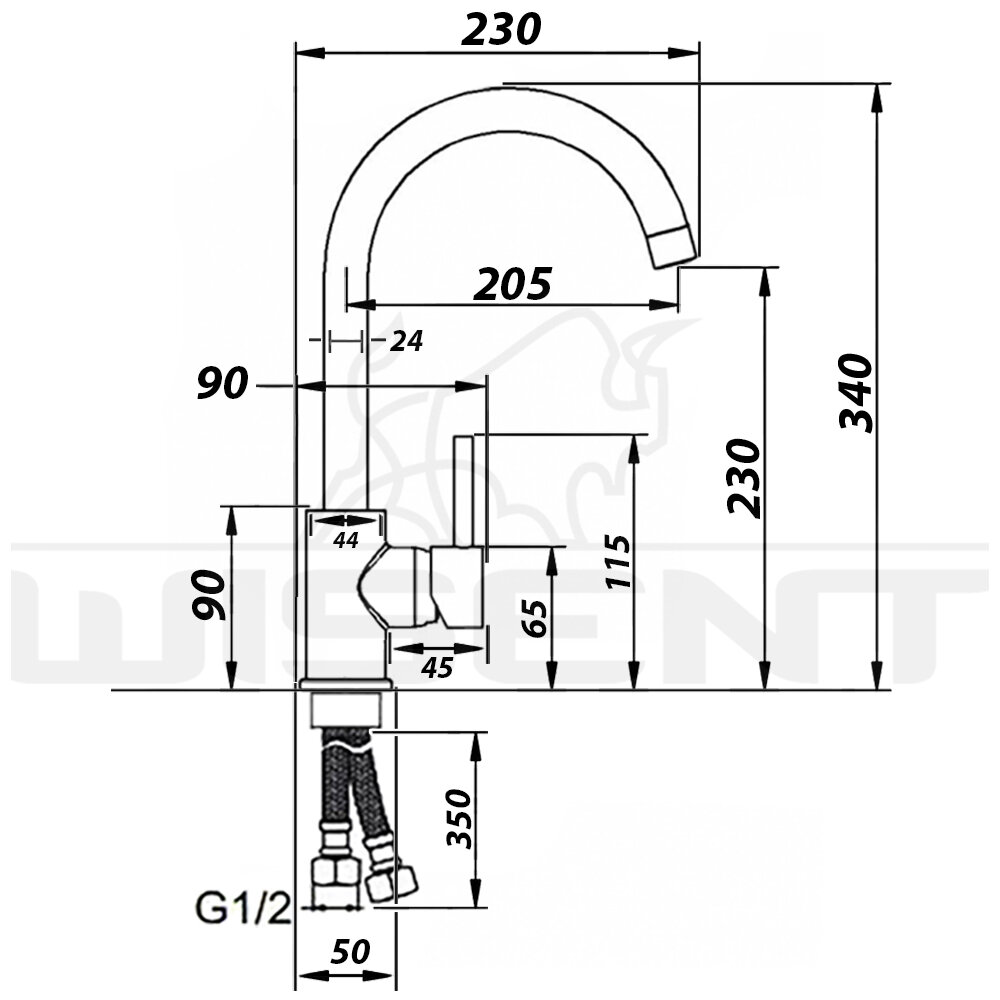 Смеситель кухонный WISENT 4998-3-U нержавеющая сталь с PVD покрытием