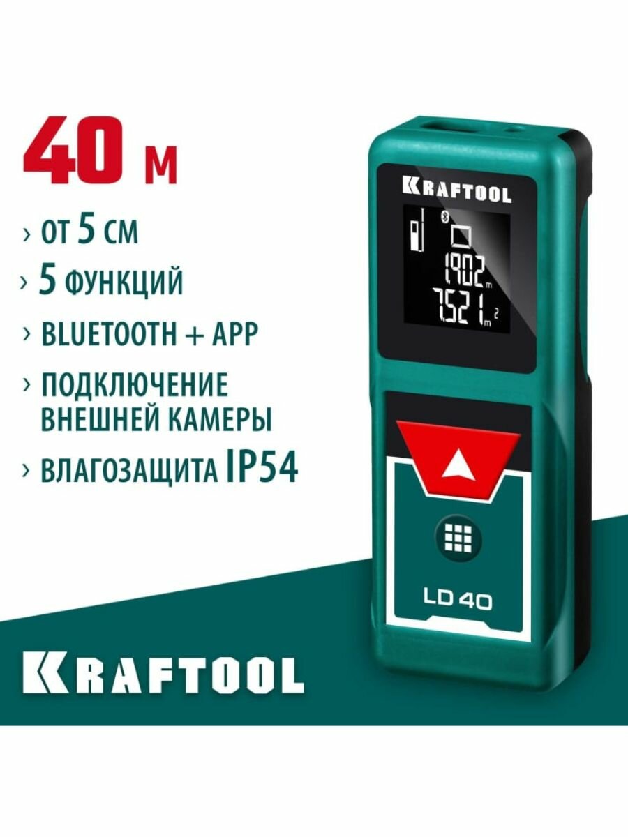 KRAFTOOL Дальномер "LD-40" лазерный, дальность 5см - 40м, точность 1,5 мм, KRAFTOOL, ( 34763 ) интересное: