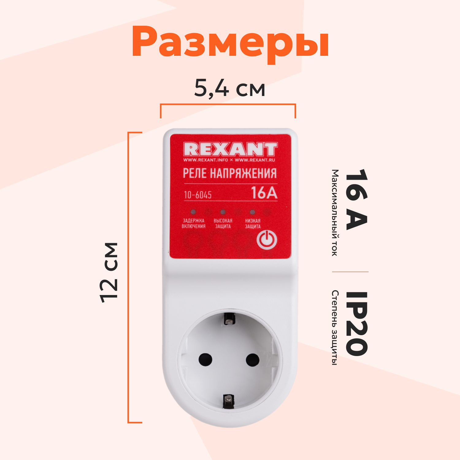 Реле напряжения Rexant 10-6045 «вилка-розетка» 16А интересное: