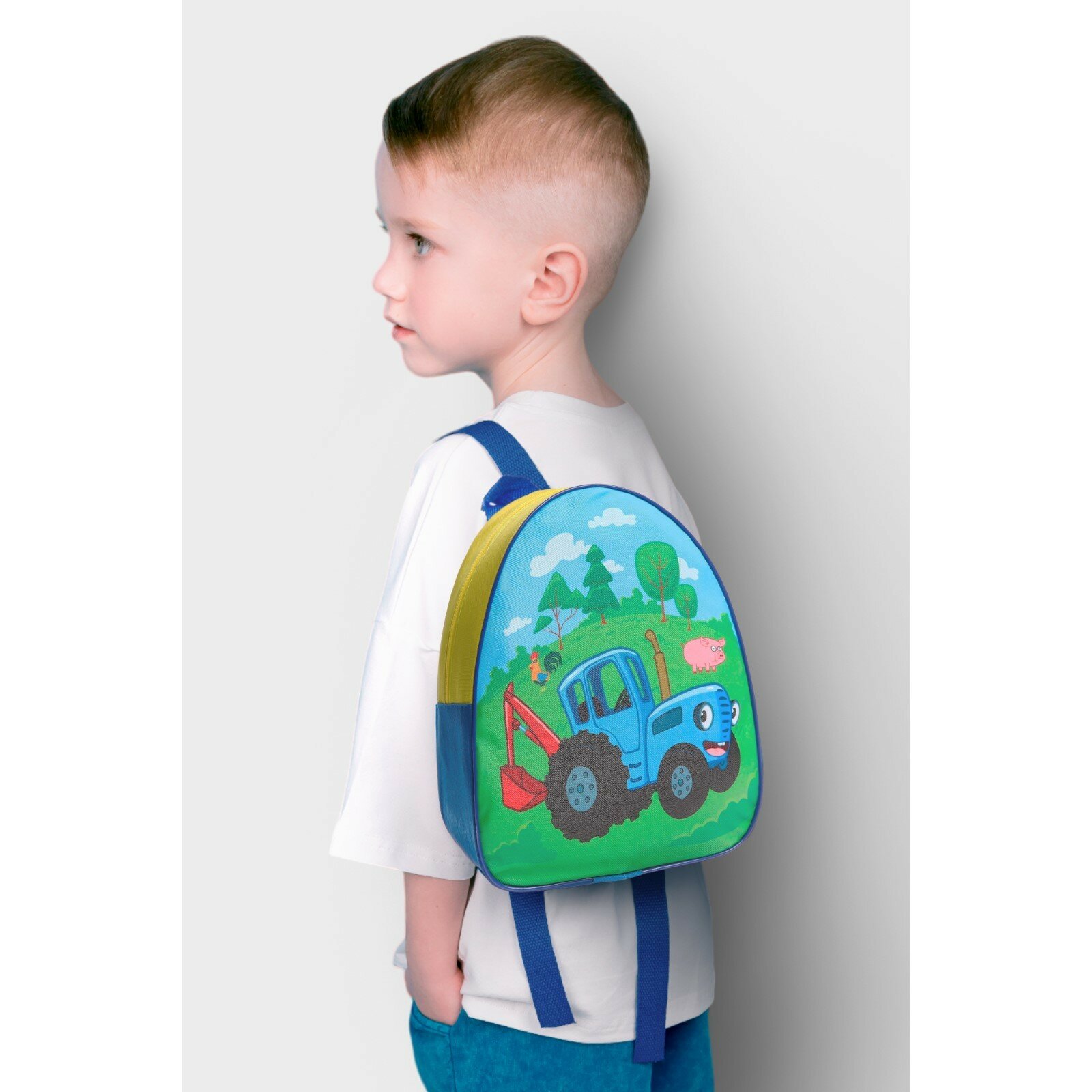 Рюкзак детский для мальчиков в садик, Синий трактор, размер 23 х 10 х 21 см