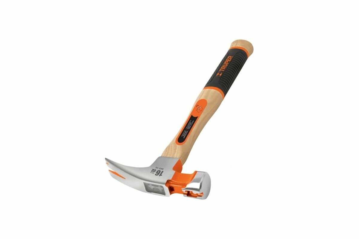 Молоток-гвоздодер Truper, с полированным бойком, деревянная ручка, длина 33 см, 567 г