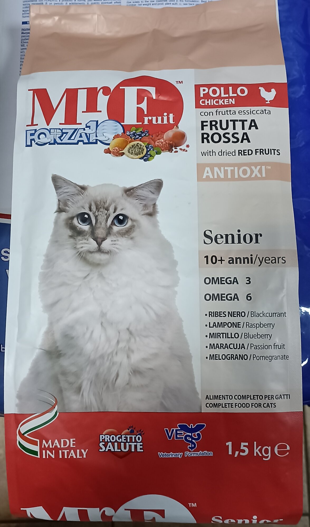 Корм для пожилых кошек FORZA10 Mr. Fruit Senior с красными фруктами 1,5 кг