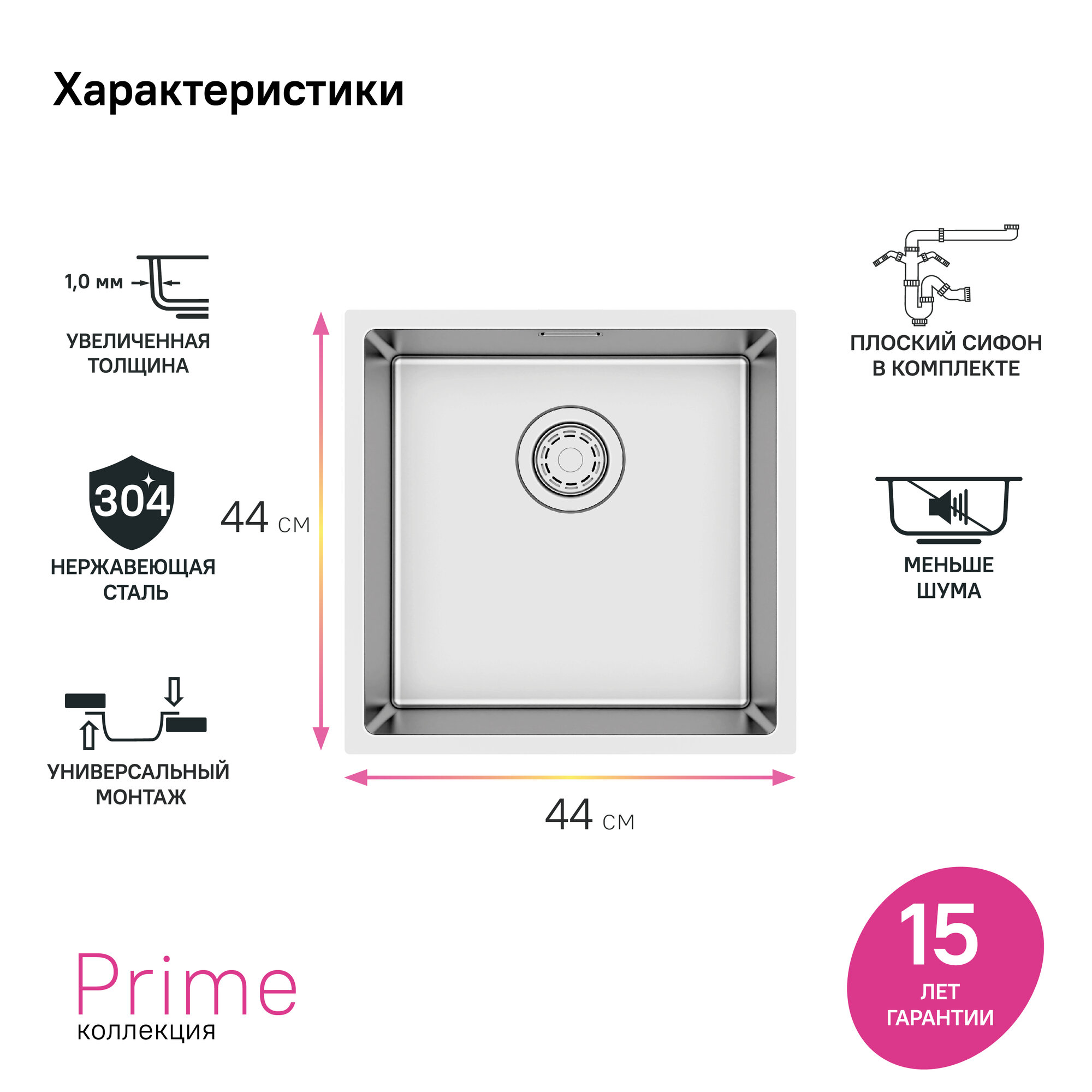 СохранитьМойка IDDIS Prime 440*440 из нержавеющей стали универсального монтажа сатин PRI44S0i77 интересное: