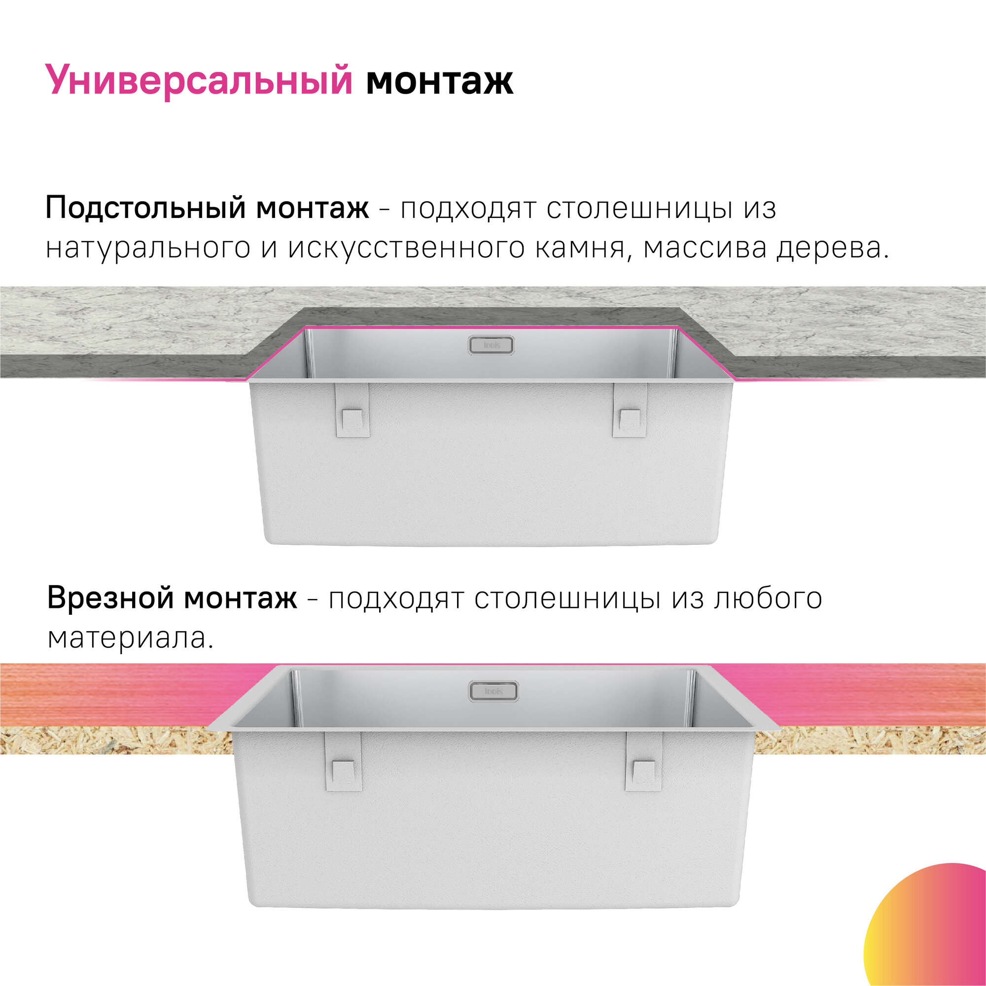 Купить Мойка IDDIS Prime 440*440 из нержавеющей стали универсального монтажа сатин PRI44S0i77