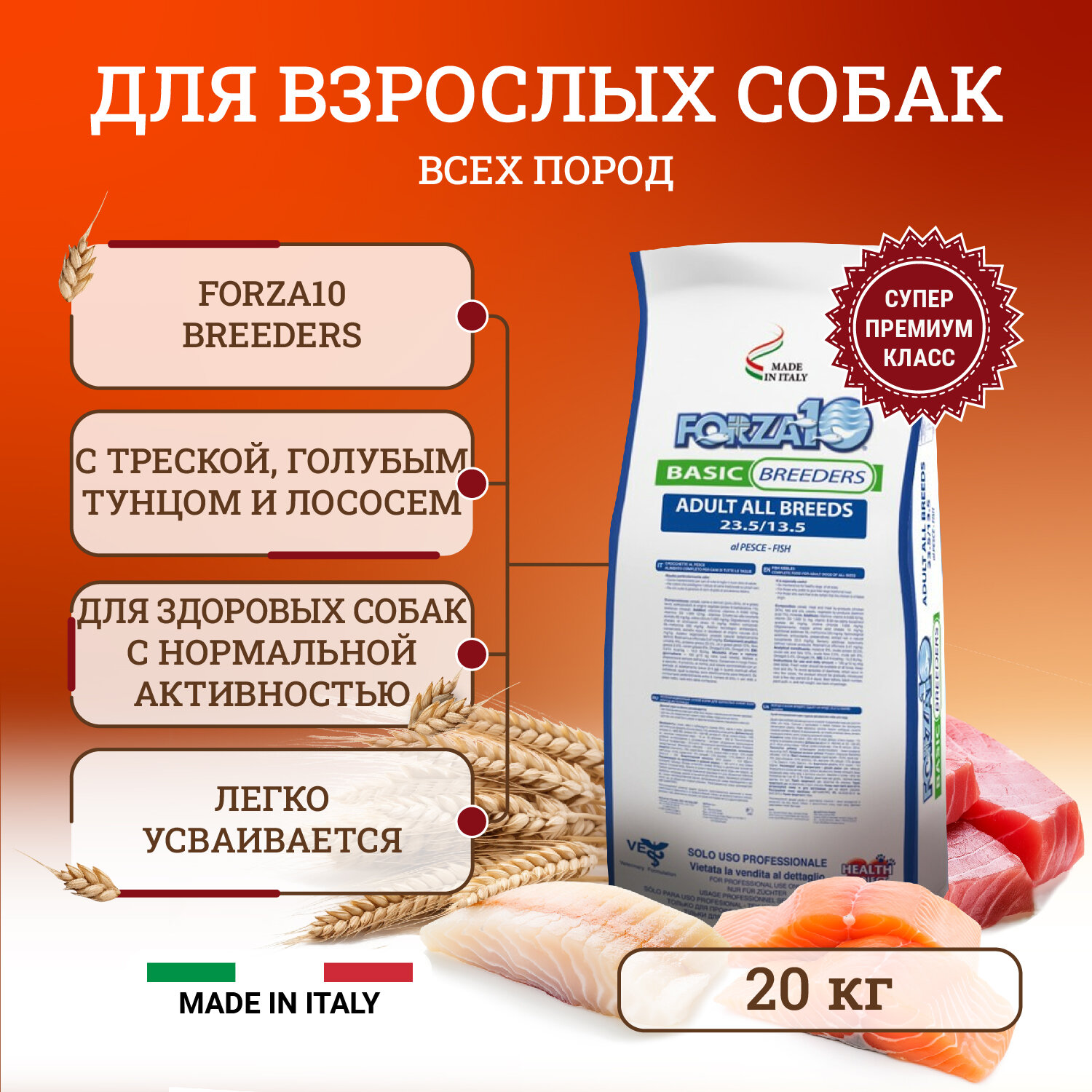 Forza 10 Basic Breeders Adult All Breeds сухой корм для собак всех пород, 23.5/13,5 с рыбой, 20 кг