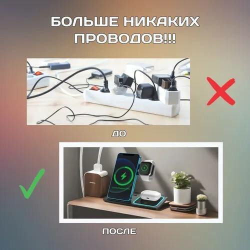 Ниже Вы можете прочитать отзывы на Беспроводное зарядное устройство 3 в 1 для телефонов, часов Apple Watch и беспроводных наушников AirPods / Док станция с быстрой зарядкой / Черный, ознакомится с подробными характеристиками, посмотреть интересные обзоры и фотографии на Беспроводное зарядное устройство 3 в 1 для телефонов, часов Apple Watch и беспроводных наушников AirPods / Док станция с быстрой зарядкой / Черный.