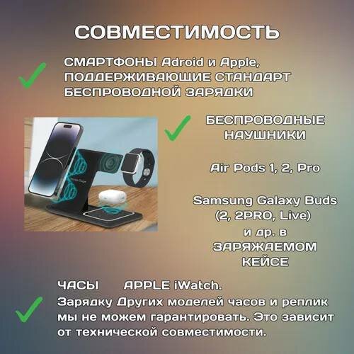 СохранитьБеспроводное зарядное устройство 3 в 1 для телефонов, часов Apple Watch и беспроводных наушников AirPods / Док станция с быстрой зарядкой / Черный интересное: