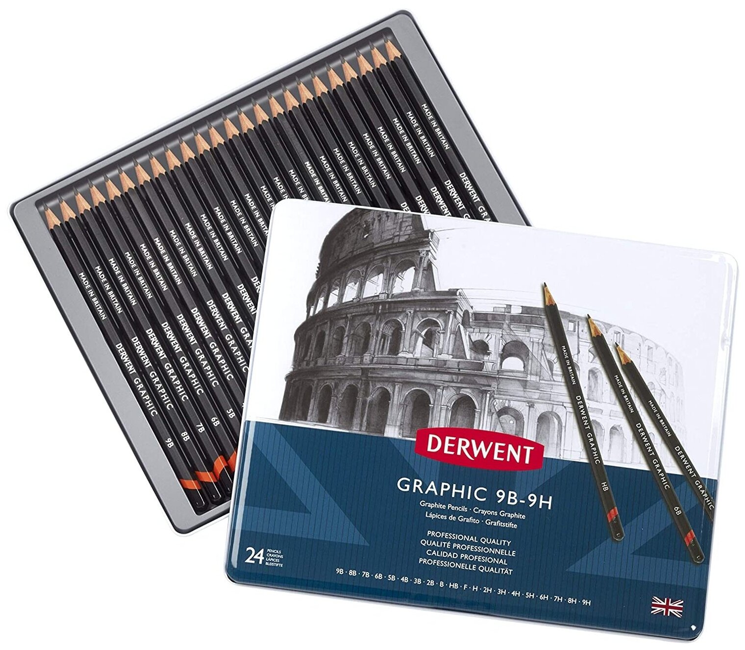 Набор чернографитных карандашей Derwent Graphic 24 штуки в металлической упаковке интересное: