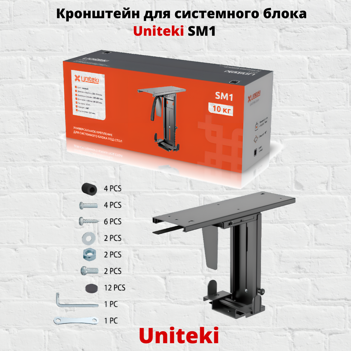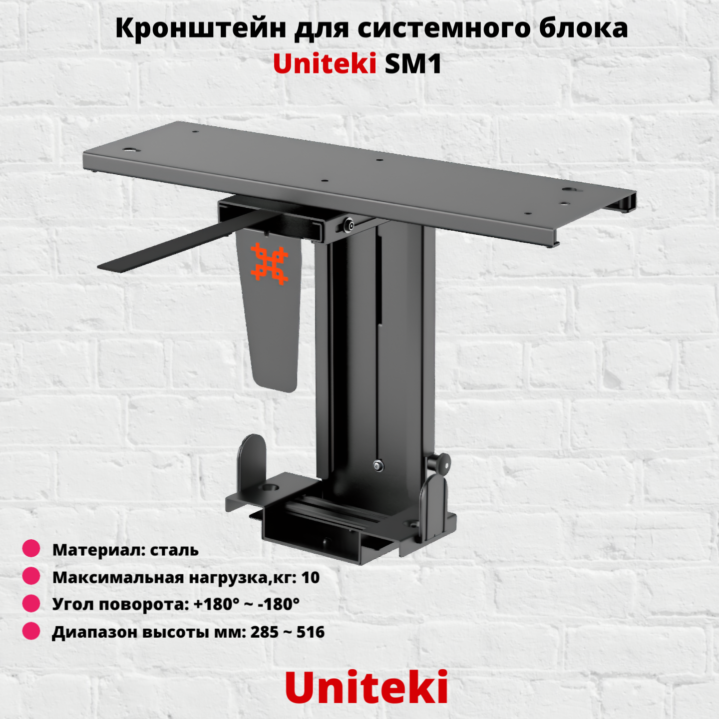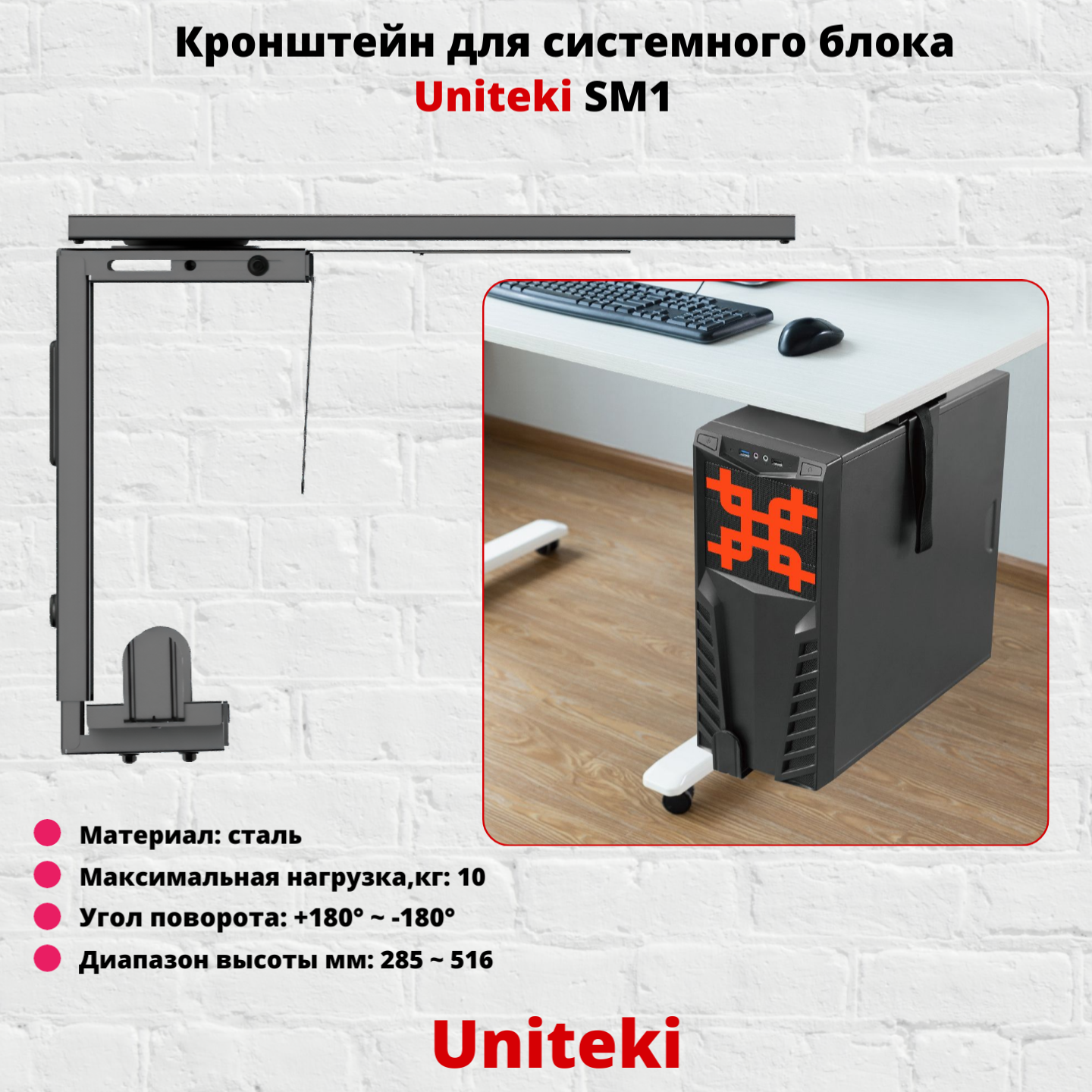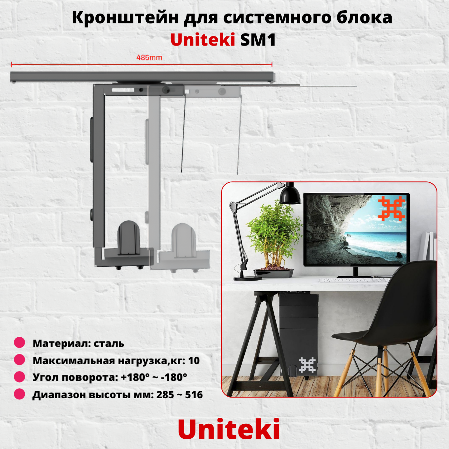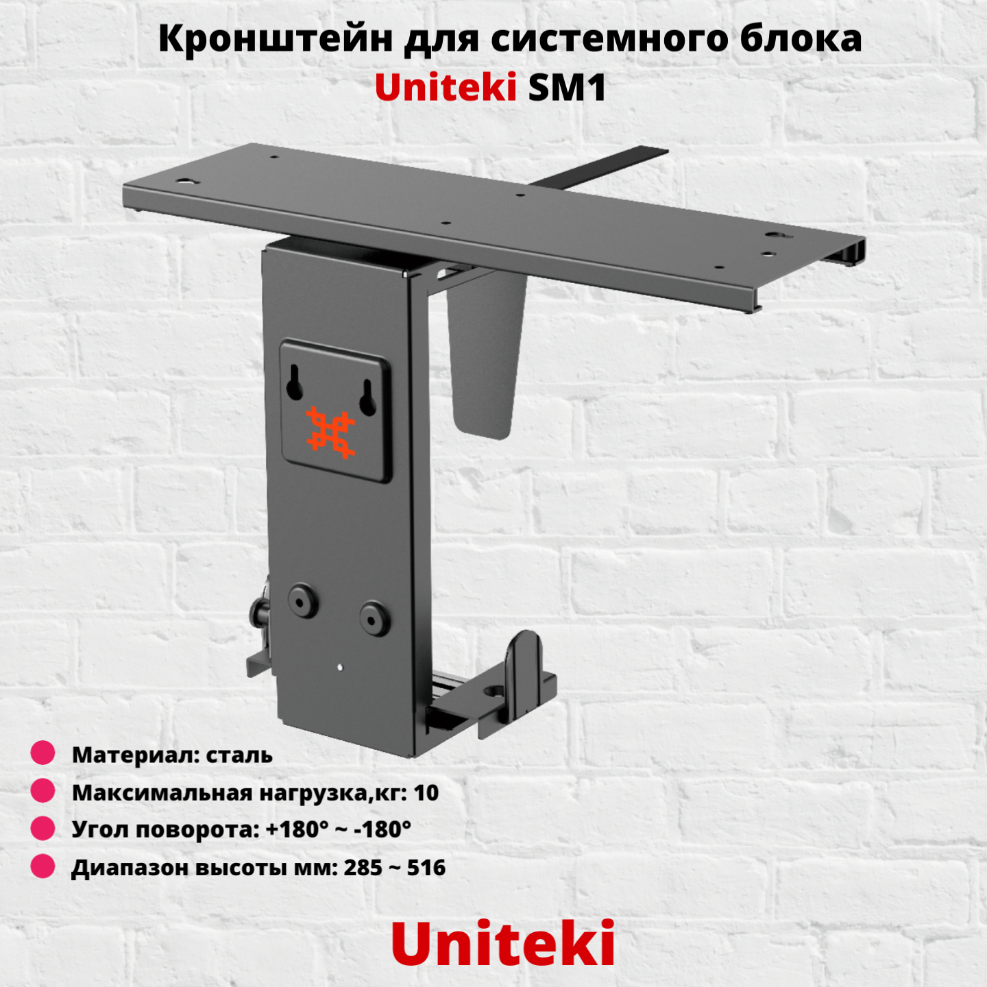 Крепление для системного блока под стол UniTeki SM1 черный кронштейн поворотный выдвижной