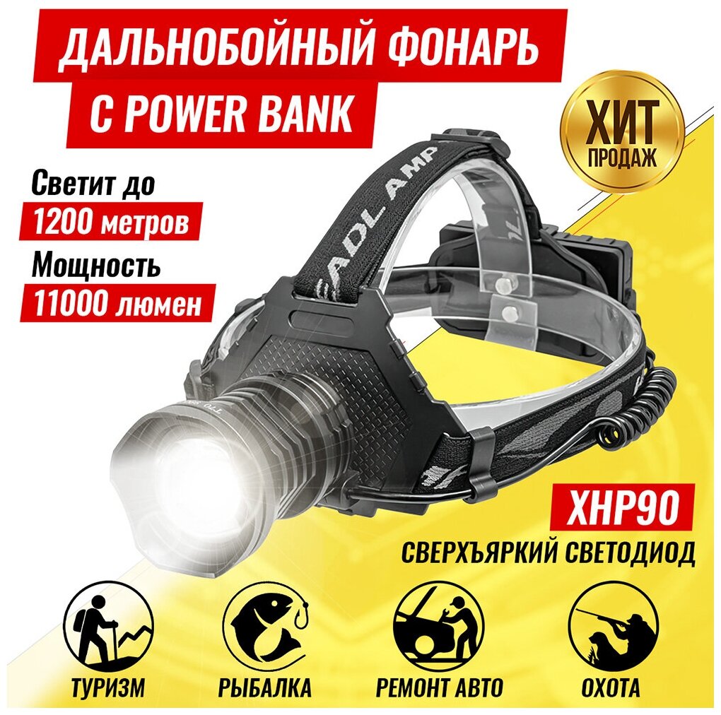 Фонарь налобный светодиодный аккумуляторный / сверхяркий мощный диод / мощный фонарик налобный XHP90 интересное: