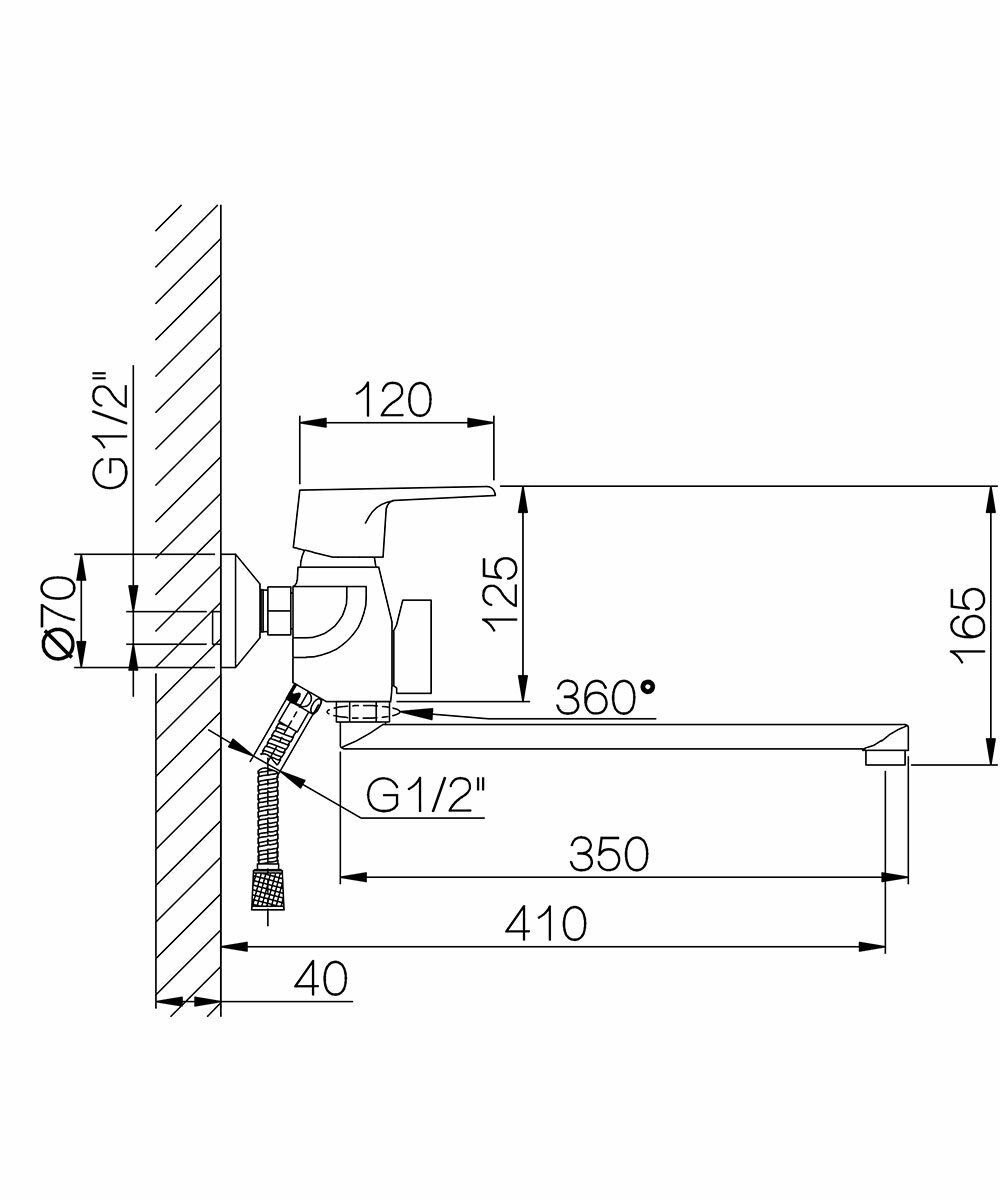 H22023 Смеситель для ванны с душем с длинным изливом одно рычажный Hansen хром