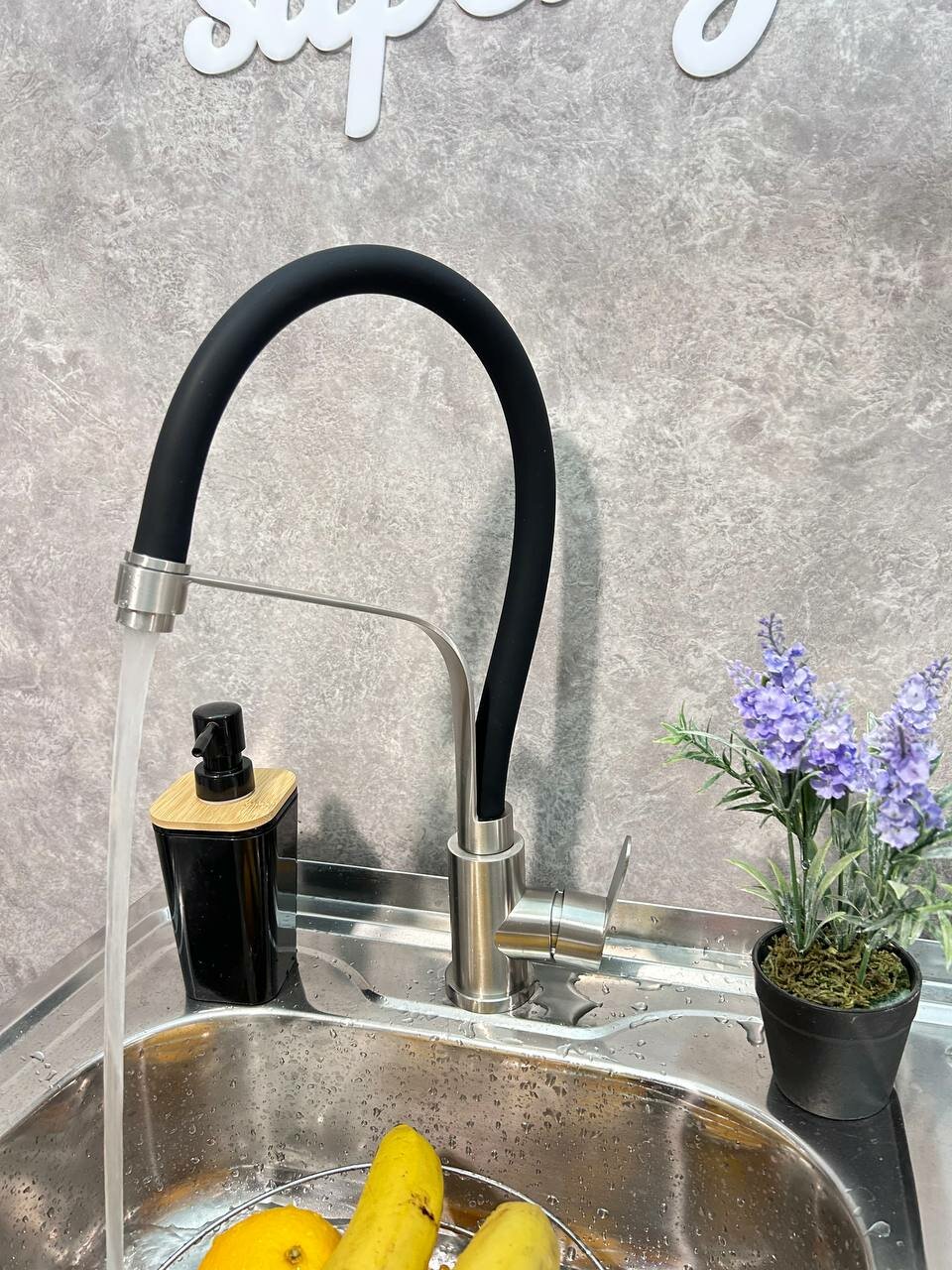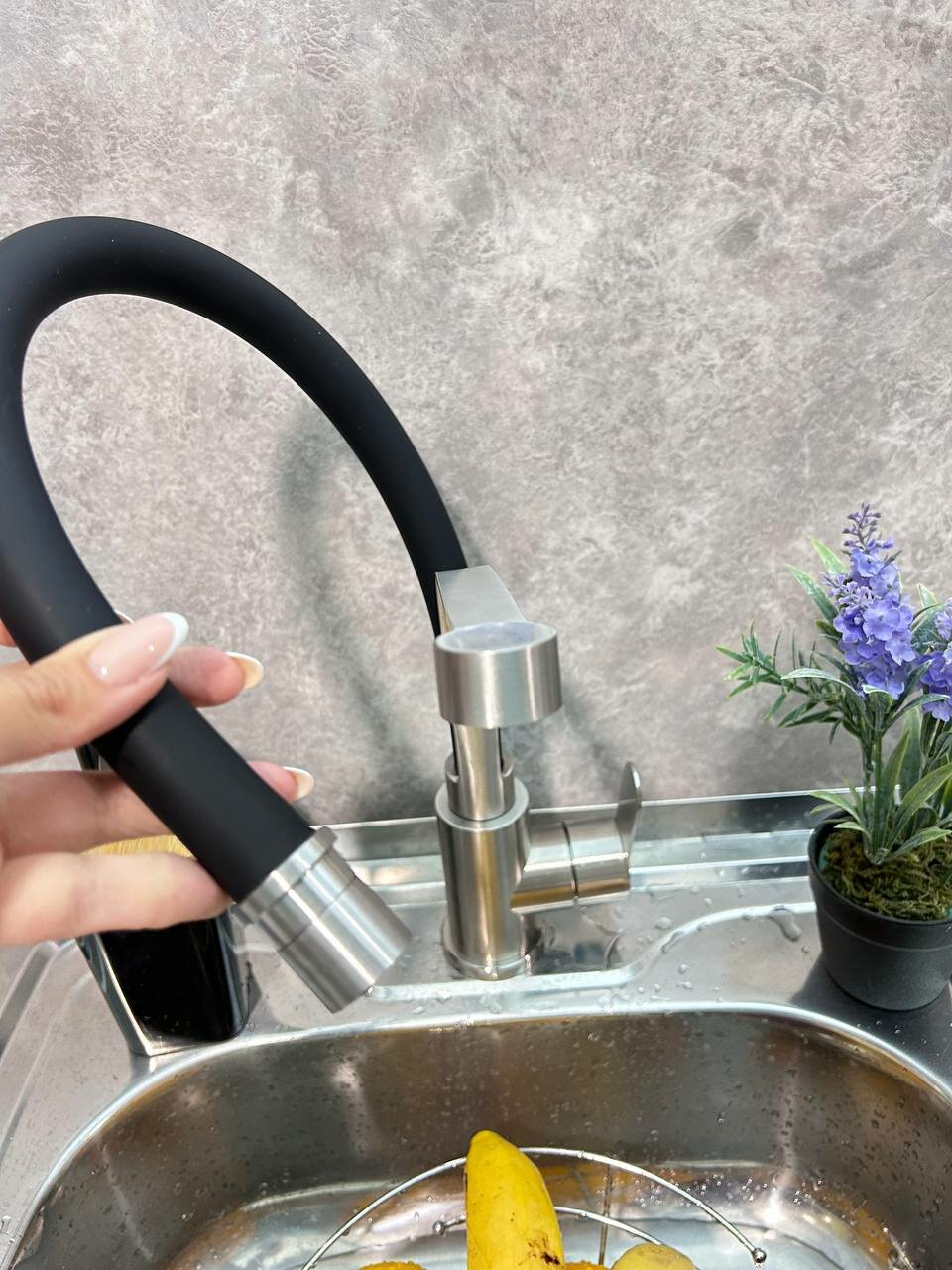 Смеситель для кухни из нержавеющей стали с гибким изливом HN54043-GC