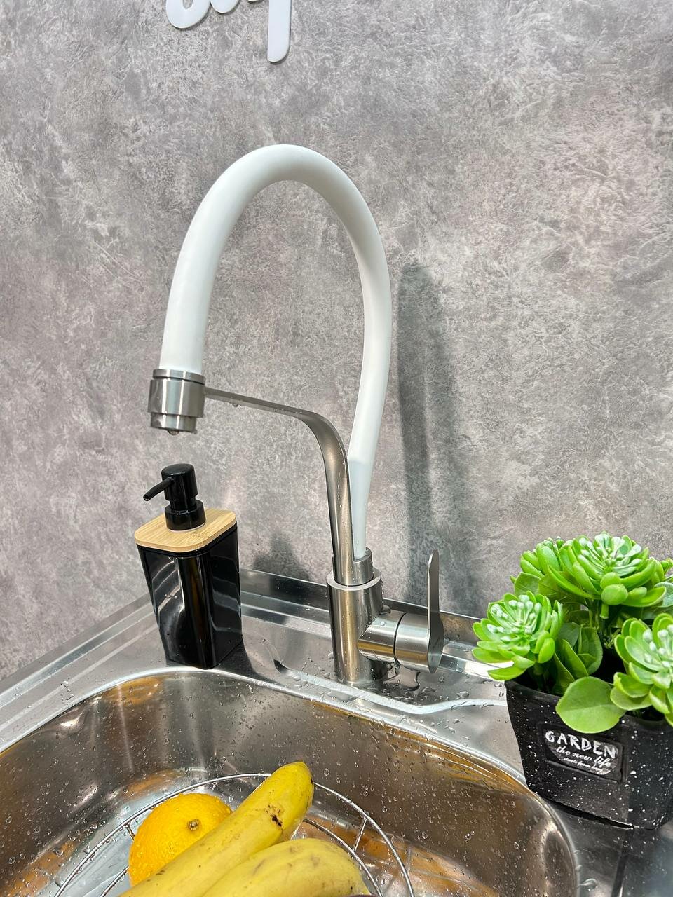 Смеситель для кухни Hansen HN15085F белый глянец, с подключением к фильтру питьевой воды