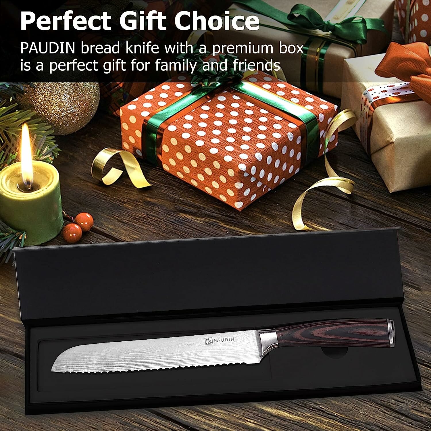 Нож для хлеба и бисквита профессиональный поварской лезвие 20см Подарок на Новый год и Рождество
