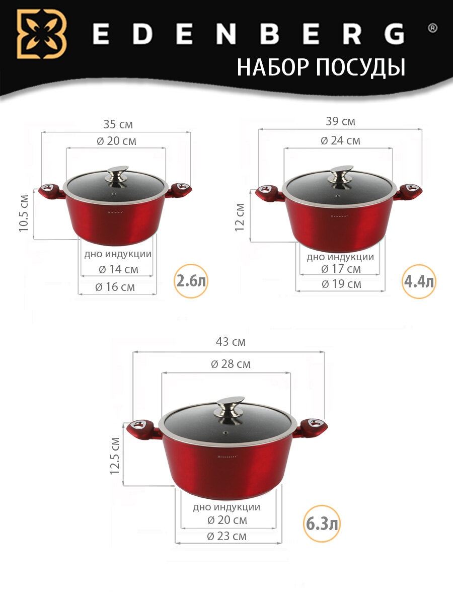 Набор кастрюль Жостово, кастрюли 2/4/5,5л, 1С408 черный