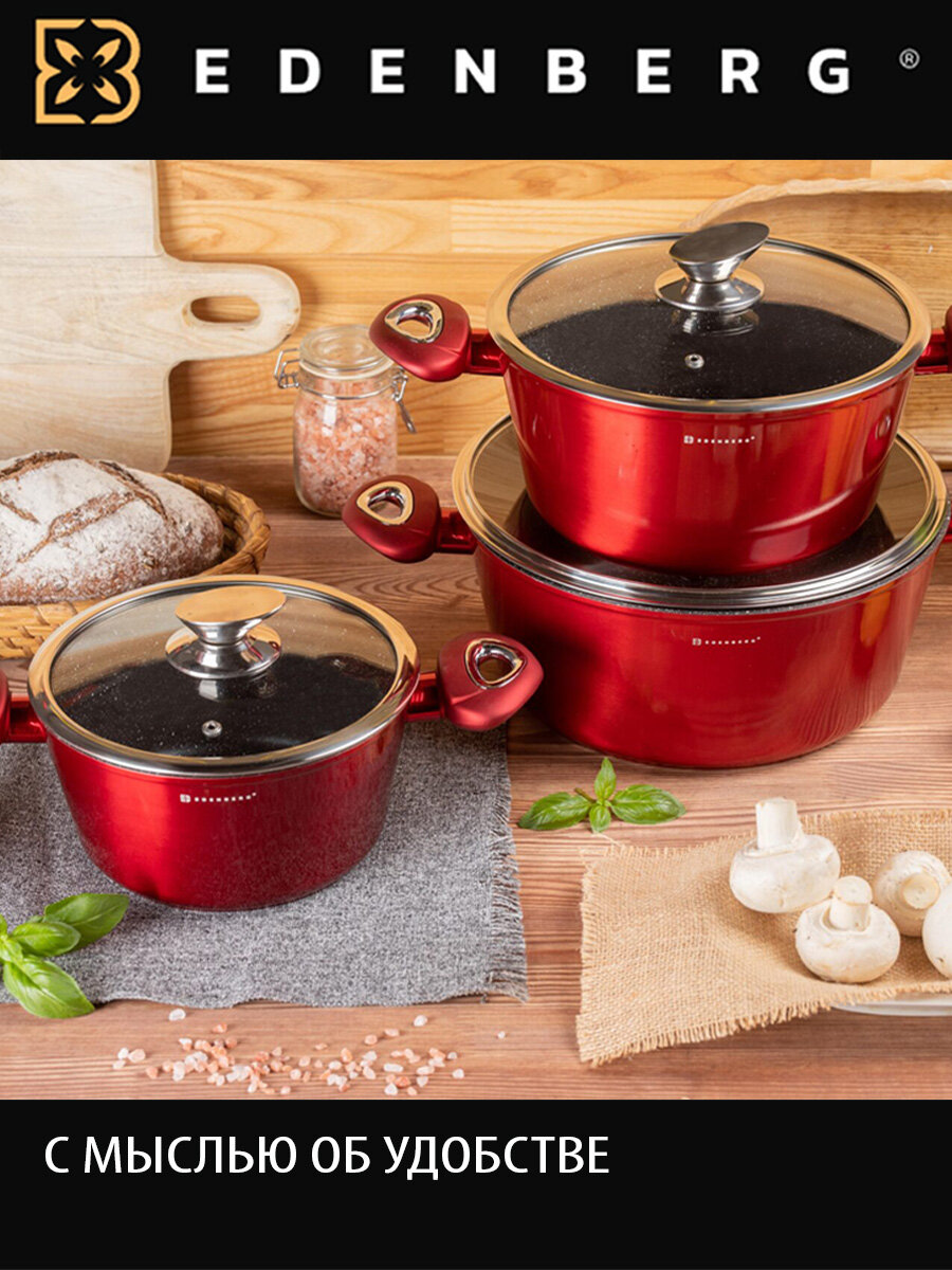 Набор посуды с антипригарным мраморным покрытием, индукция, литой алюминий Edenberg, 10 предметов
