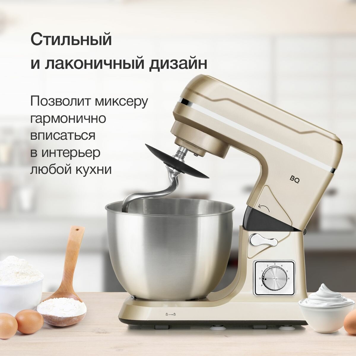 Планетарный миксер с чашей для кухни BQ MX821 Gold Объем чаши 5л Мощность 1600 Вт интересное: