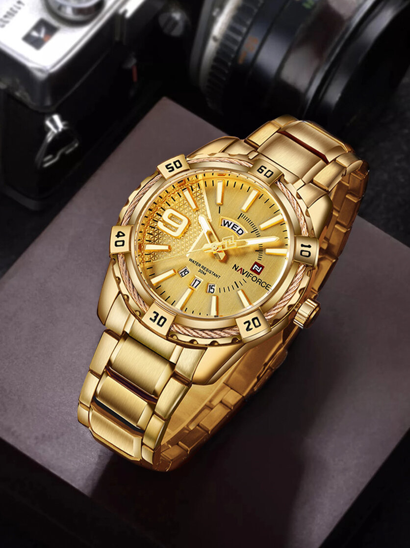 Ниже Вы можете прочитать отзывы на Часы наручные мужские кварцевые Naviforce металлические, круглые, золотистые, ознакомится с подробными характеристиками, посмотреть интересные обзоры и фотографии на Часы наручные мужские кварцевые Naviforce металлические, круглые, золотистые.