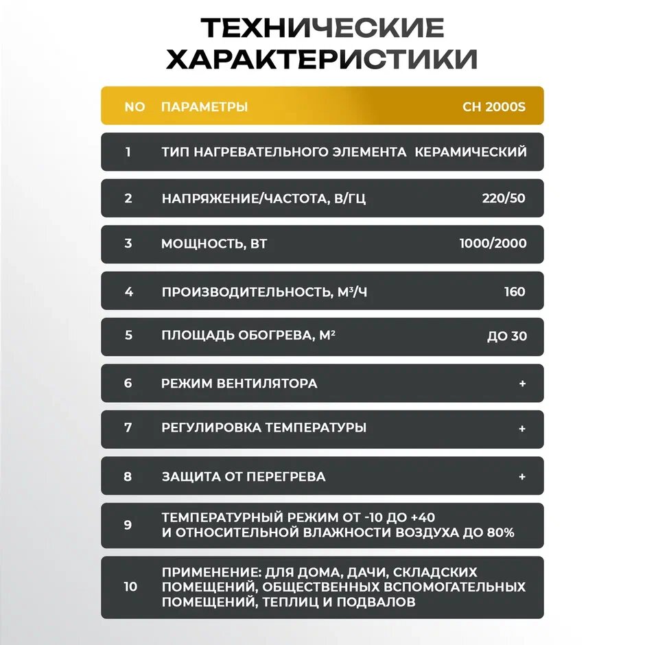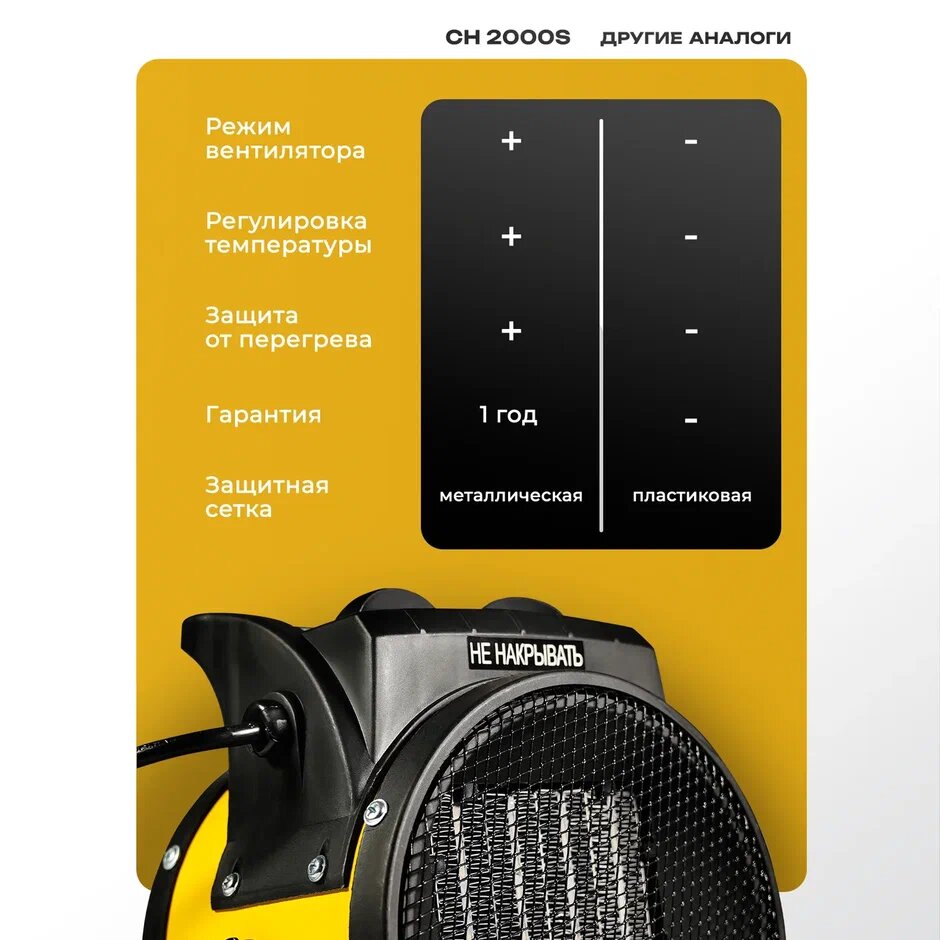 Тепловая пушка / Пушка тепловая электрическая керамическая Electrolite CH 2000S (без горелки, 2 кВт, 3 режима работы, керамика, 220 в, с механической регулировкой температуры )