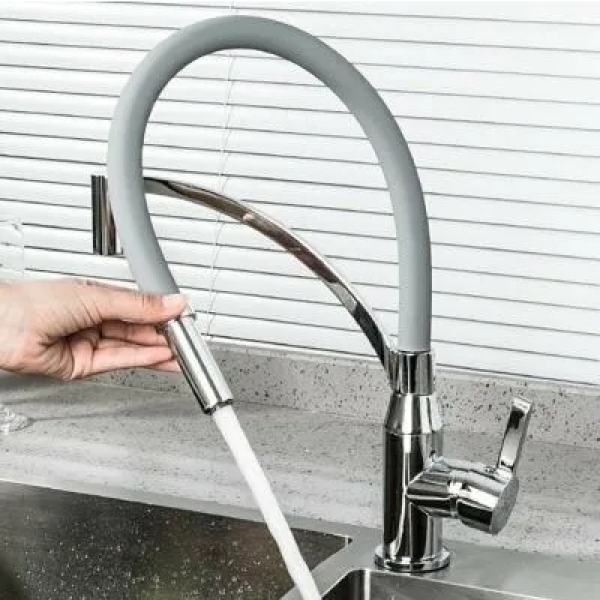Смеситель для кухни SHEVANIK S643-9 гибкий излив, хром/серый